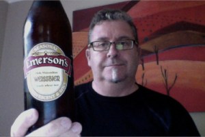 Googlvating tells me “An especially imported Bavarian yeast strain gives Emerson’s Weissbier its authentic German character. The beer pours a cloudy, pale golden colour, and has a sweet bready aroma with notes of banana and sherbet. In the mouth the beer is spicy and tart, with some grainy sweetness. With age, Emerson’s WeissBier develops a clove-like aroma and the taste becomes softer and more cidery. Bottle Conditioned.”
