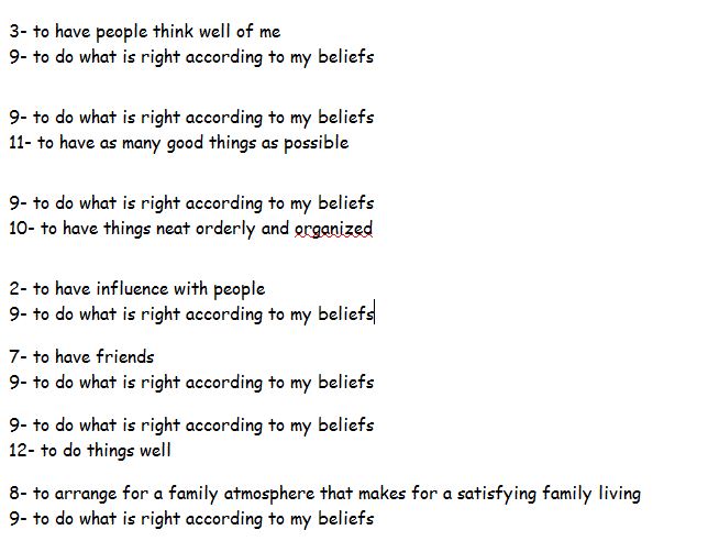 This current week we did “Engagement, Motivation and Goal Setting“. Part of this was a “Know You” question and we were asked to write down our own “Values Inventory”