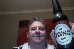 Epic – Message in a Bottle. a 7.5% ABV beer in a 500ml bottle. Brewed at Steam Brewing Company In the style of an India Pale Ale (IPA), in Auckland.