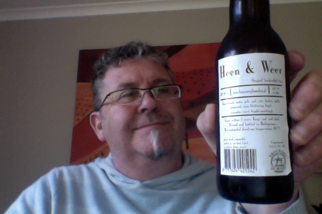 so Heen & Weer – pours a brilliant gorgeous orange colour, and with a fearsome head, slightly cloudy, well carbonated. I failed to take due care and at the last I managed the sediment and turned it all very cloudy.