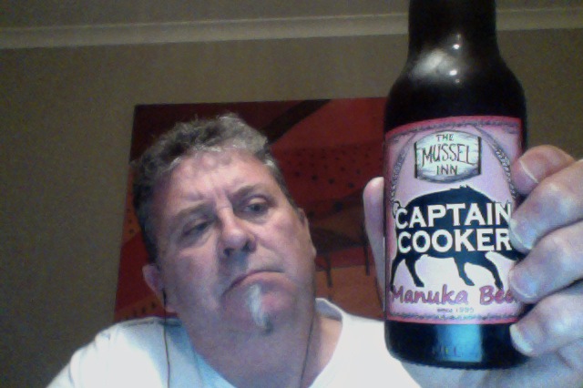 Mussel Inn Captain Cooker Manuka Beer, then. MrsPdubyah is watching the teevee and this seems like a distraction. Its a pretty pink label and it holds within a 330ml portion of a 5% ABV beer, but wait…