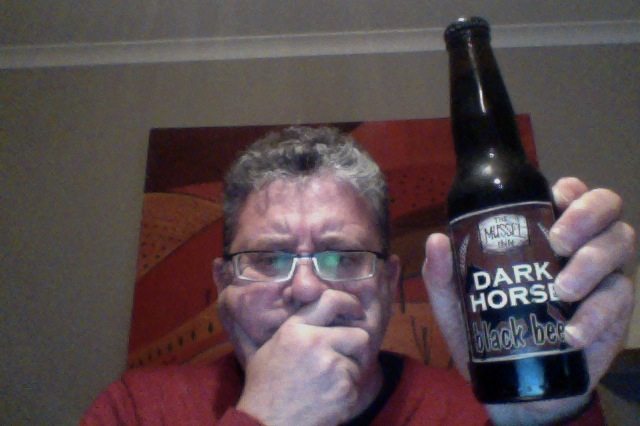 Right then, last chance saloon the Mussel Inn Dark Horse Black Beer – Which is brewed by The Mussel Inn, and they do this in the style of a Porter in the deepest Onekaka, New Zealand.