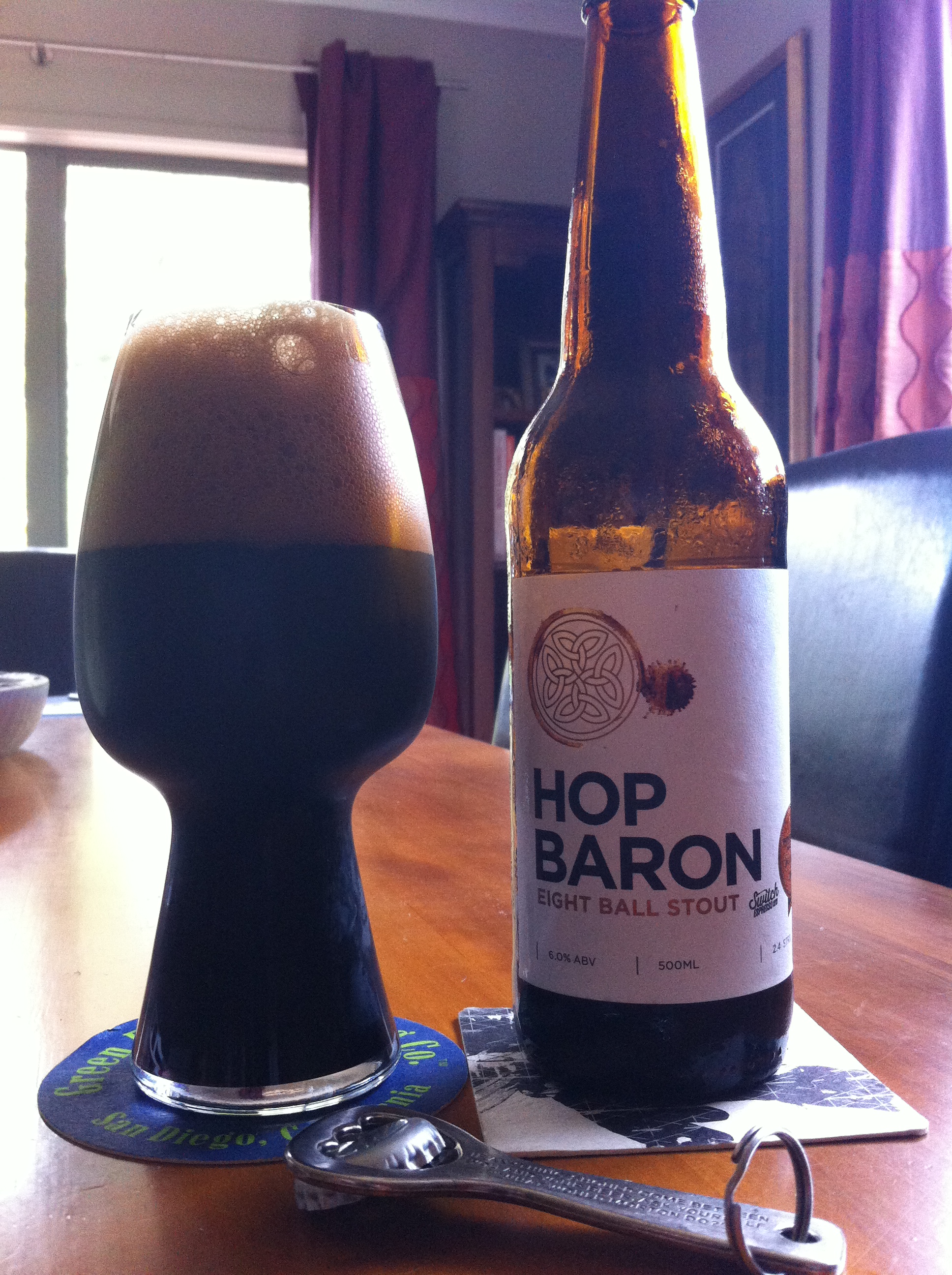 Back to a bottle. Back to a Stout. Another new brewer to me – this one Hop Baron, and this their 8 Ball Stout.