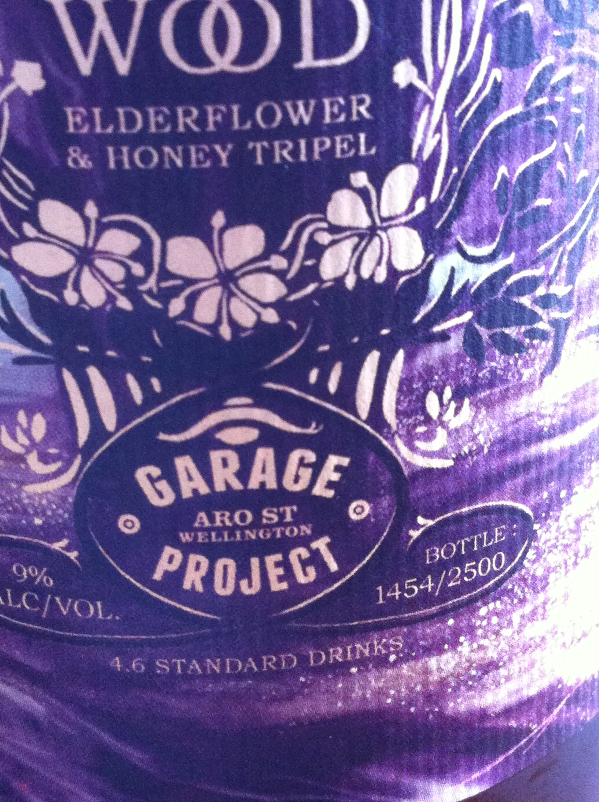 The Elderflower and Honey Tripel is in a 650ml bottle, is 9% ABV, and 4.6 Standard Drink units and about 495 calories in the bottle.