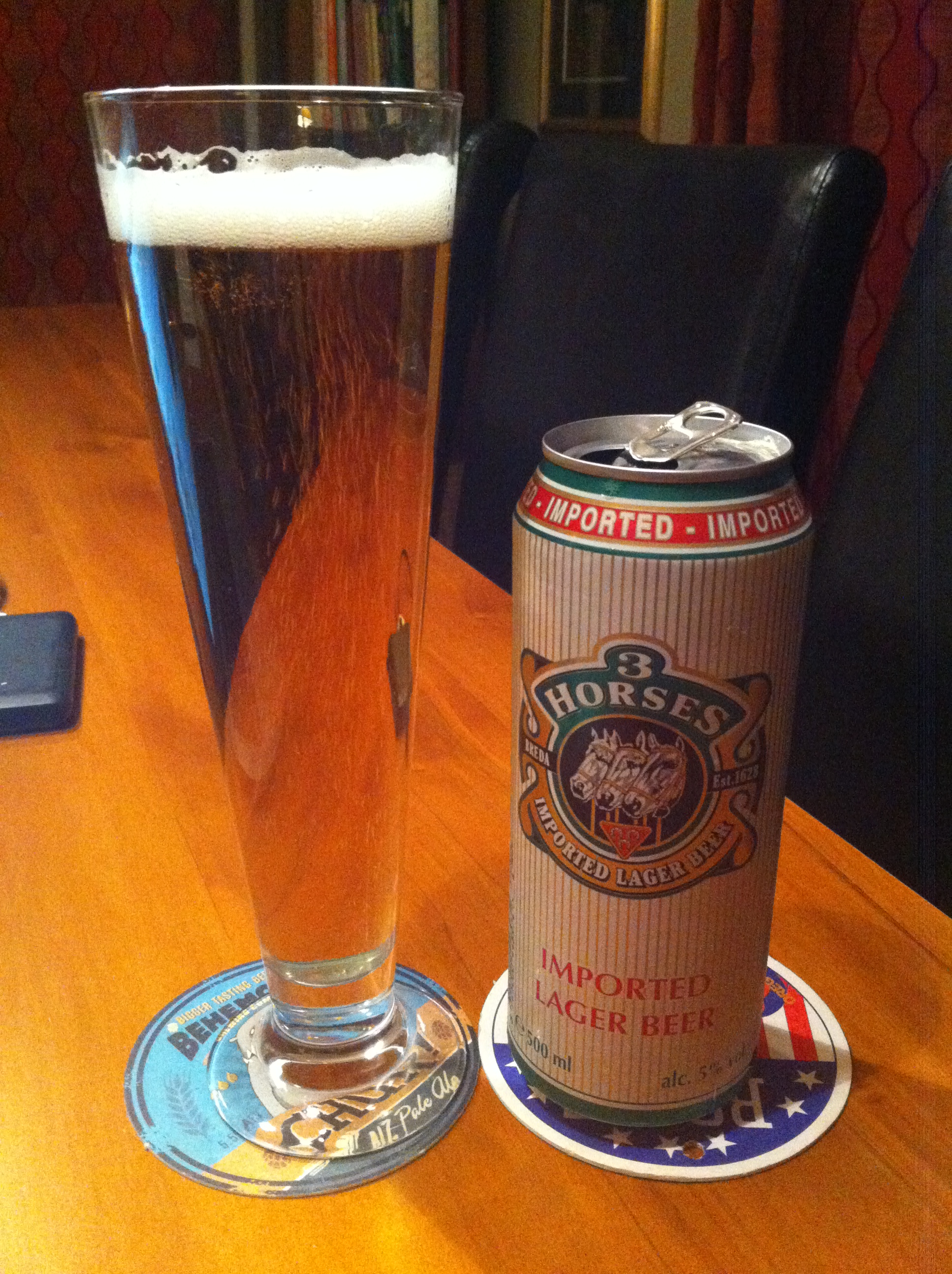 Taste is of a sweet malt base lager, almost over sweet and cloyingly so. Not much by way of body, and it leaves a rather metallic mouth feel as a linger.
