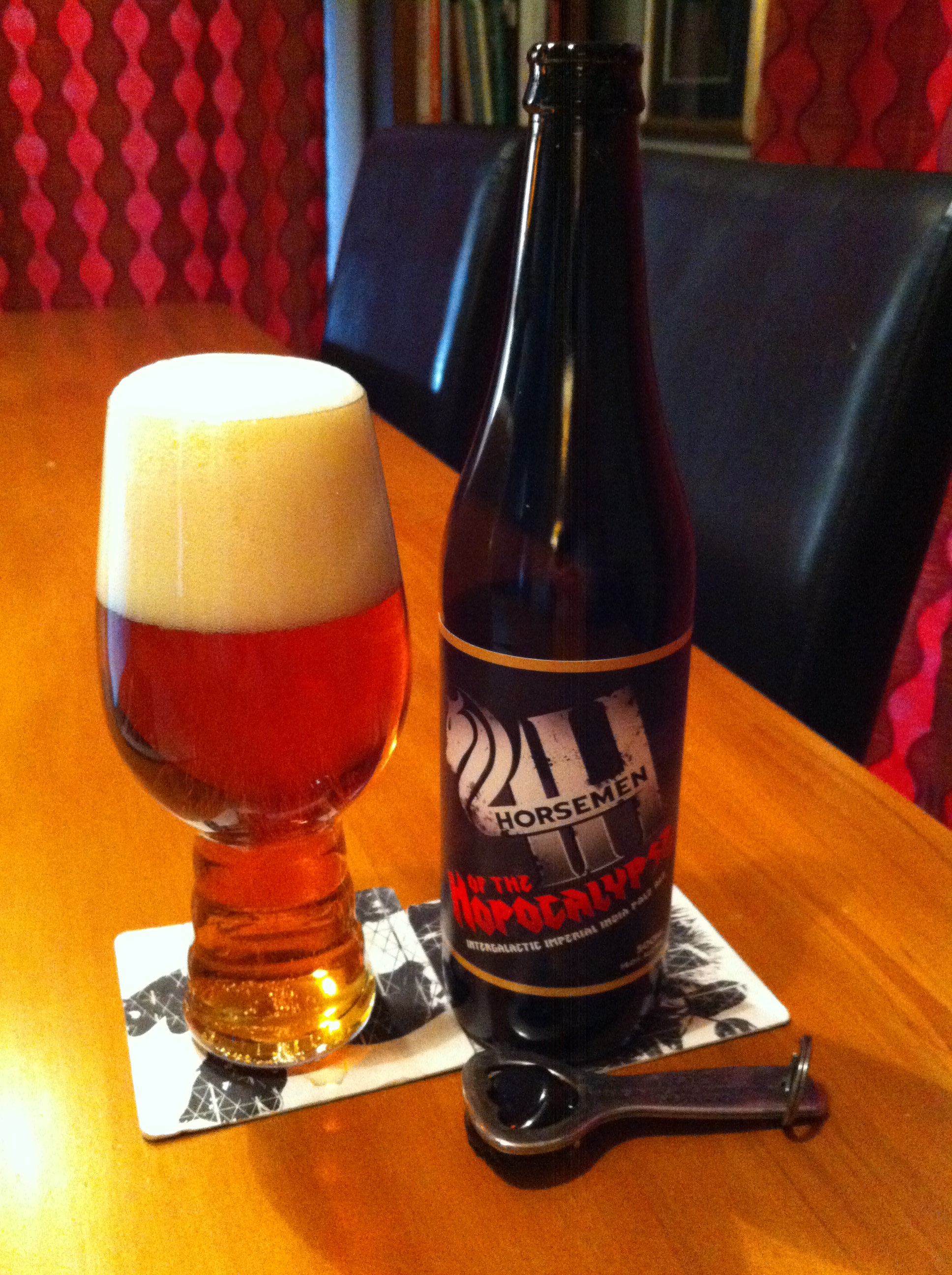 Four Horsemen Of The Hopocalypse is brewed by Steam Brewing Company this is in the style that is Imperial IPA and that’s around the corner from in in Riverhead Auckland, New Zealand