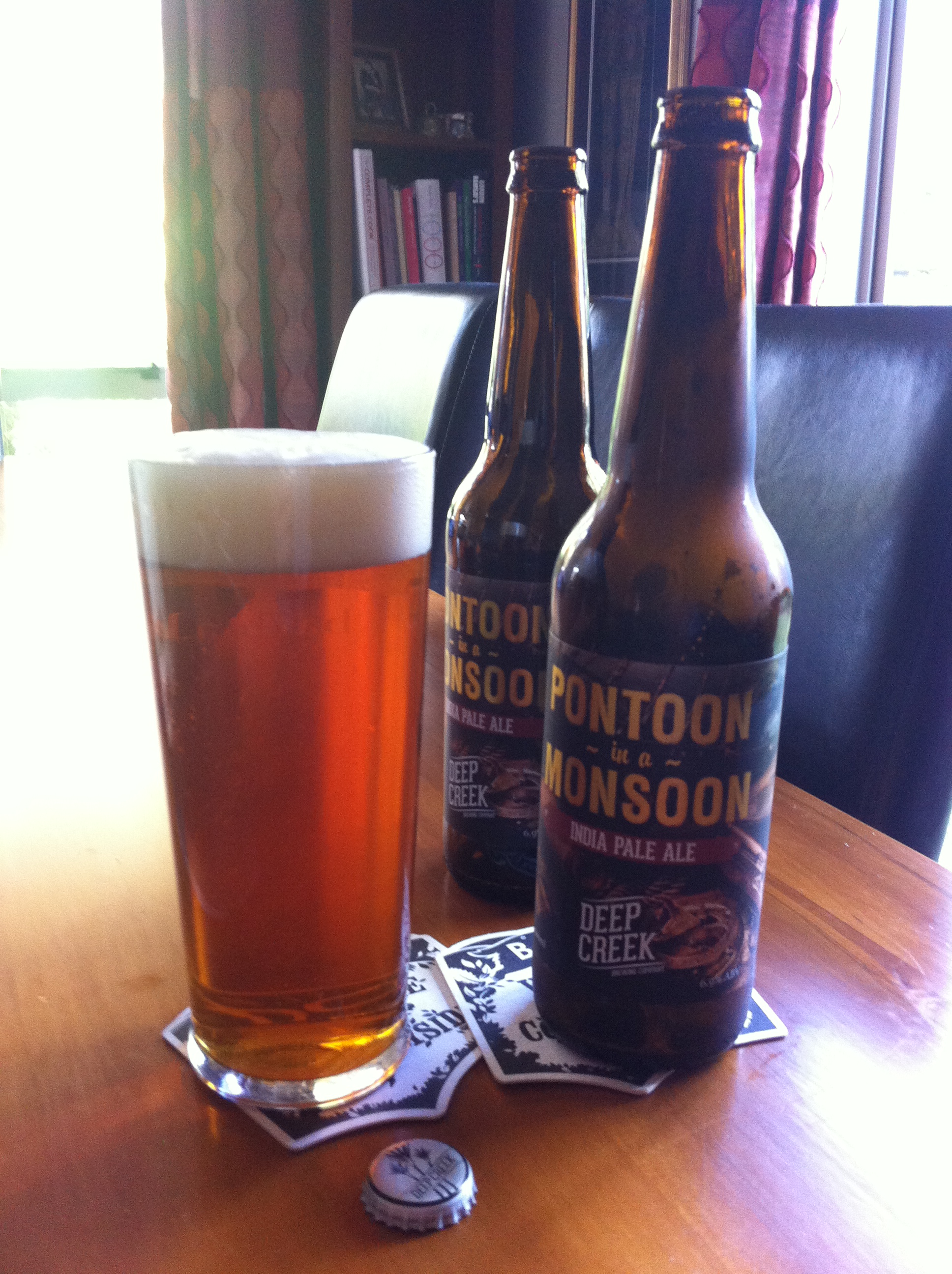 Special beer, because it arrived as a NZ secret Santa gift that from a New Zealand twitterer. Overly generous I was humbled to receive 6 of the Deep Creek Pontoon in a Monsoon bottles from my local pub. So I find it my pleasure to sit and enjoy.