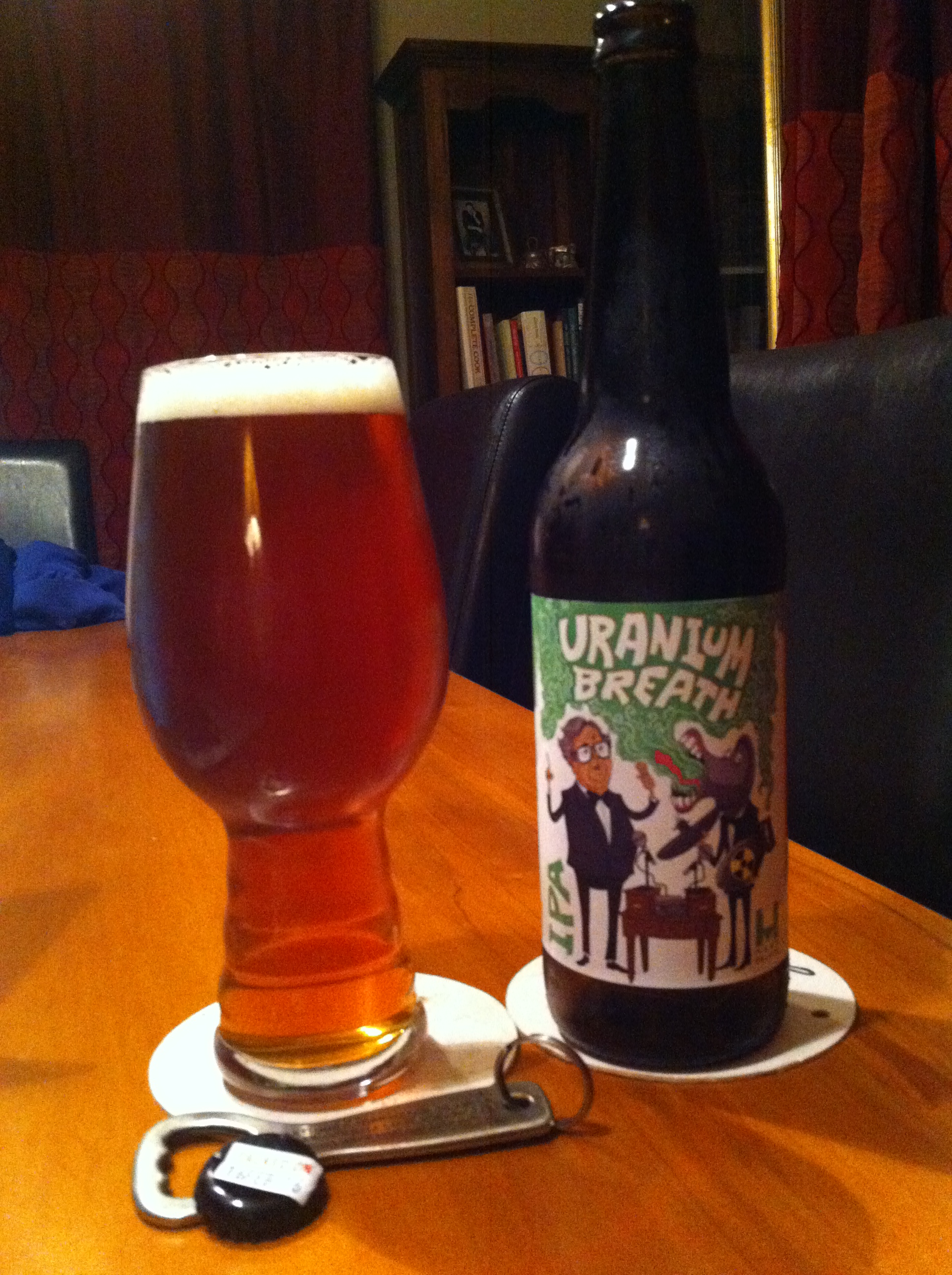 They’ve only gone and put it in bottles! The Mash Palace Uranium Breath beer that was just that good is not on a wider distribution. Mad if I didn’t try one. This made the Pdubyah 10 list in the keg version, I’m hoping the bottle will be just about as good.