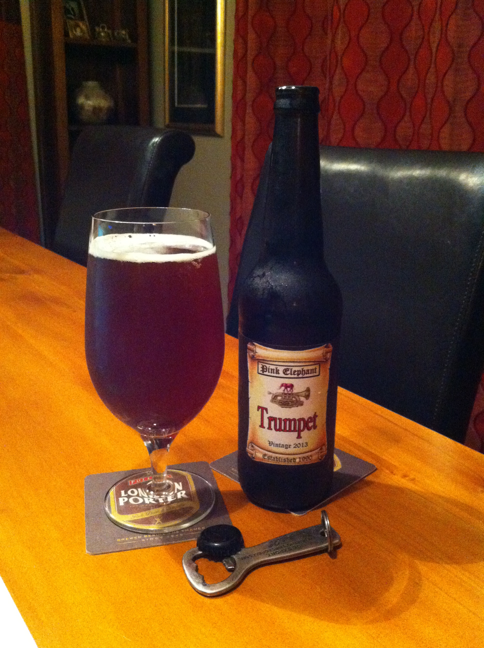 I was contemplating Beer, Something familiar and from the past, nothing fancy but a beer that I have a fond, yet distant memory of, so it is with a smile that I brought me a Pink Elephant Trumpet – Still the 2013 vintage.