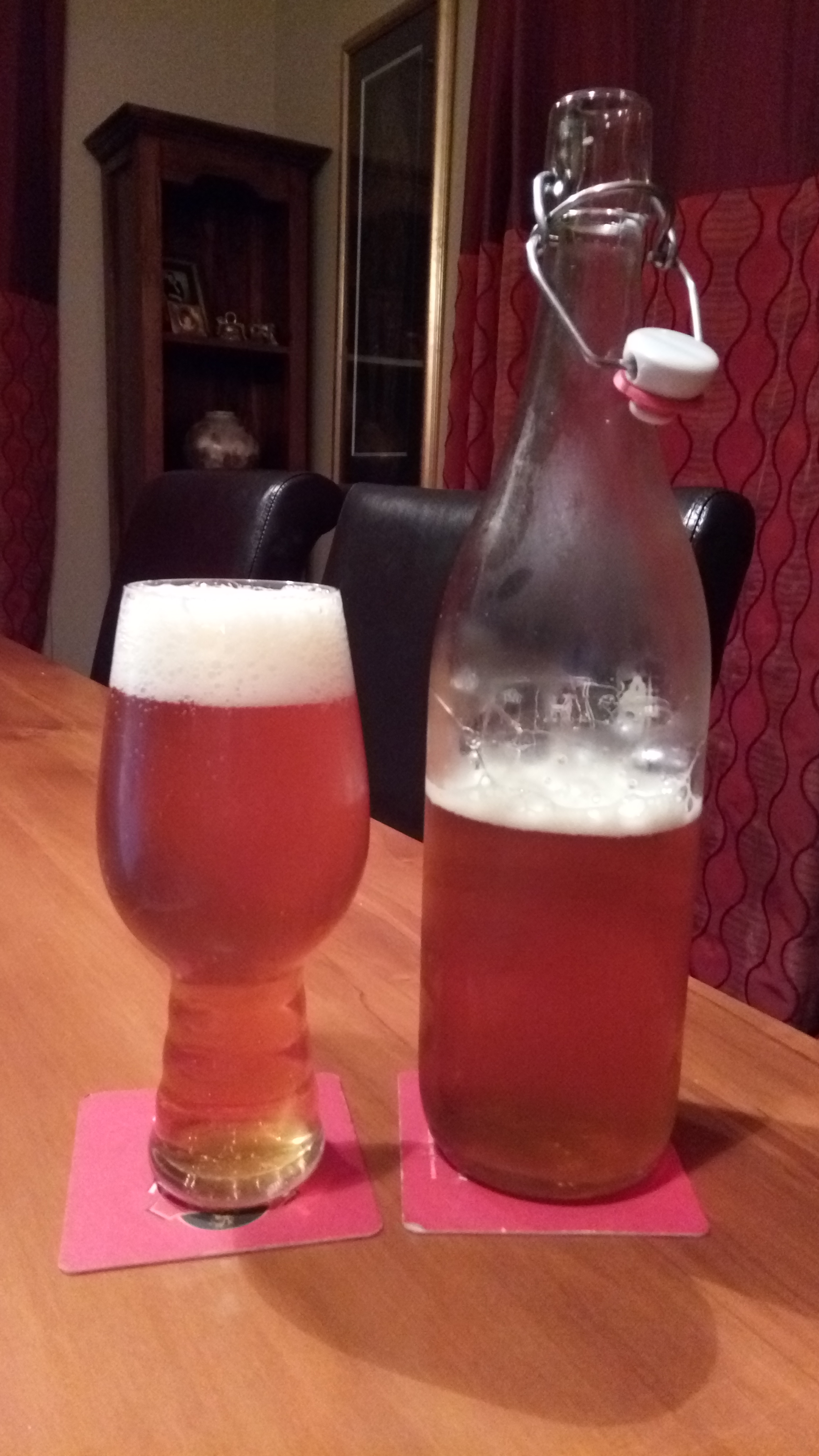 In the glass, a cloudier pour than I expected, nice white firm head, and a bagful of aroma that is like passionfruit, very dense. Nice.