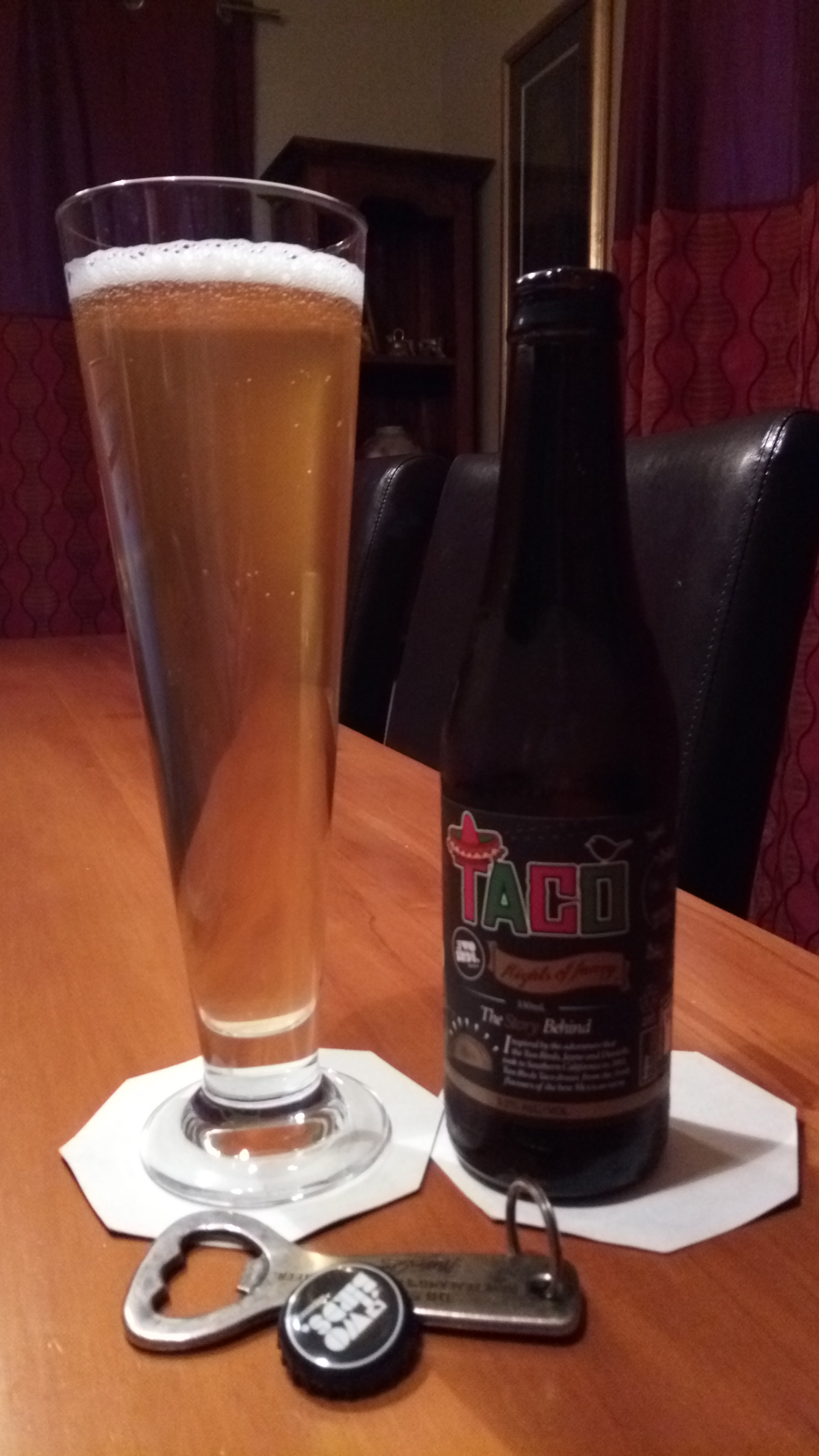 Have to say that the aroma from the bottle is like no Taco I ever had, but then I don’t go out often. This does however seem to be alike a grain beer.