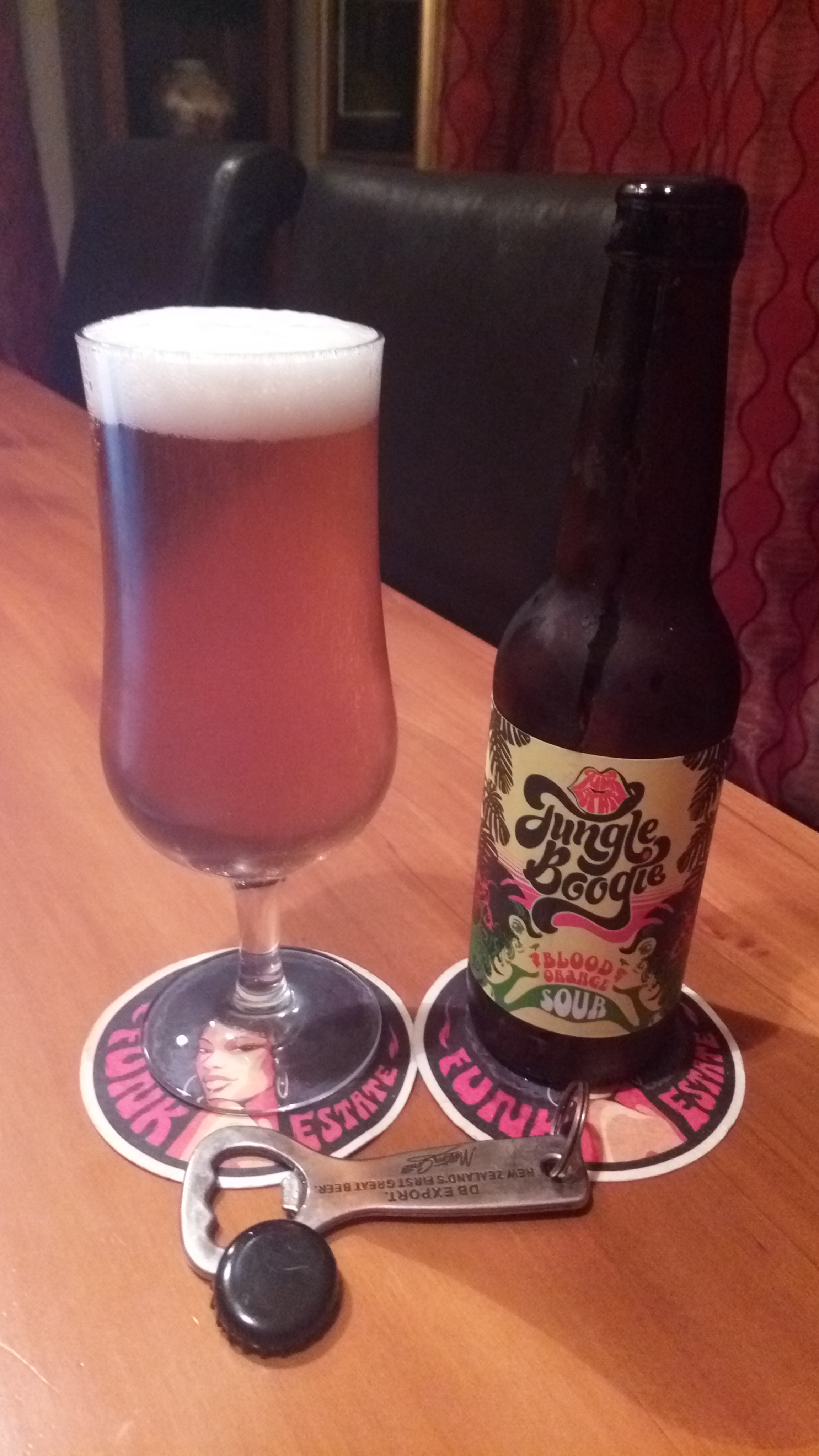 The very short journey (of two beers) must end then with the Funk Estate Jungle Boogie a Soured Fruit Beer, this is another Soured beer. How unusual, not, and not faddish at all, and I have little expectation. I’m cruel but not heartless and I hope this is better than I’m pretending I’m hoping it’s not.