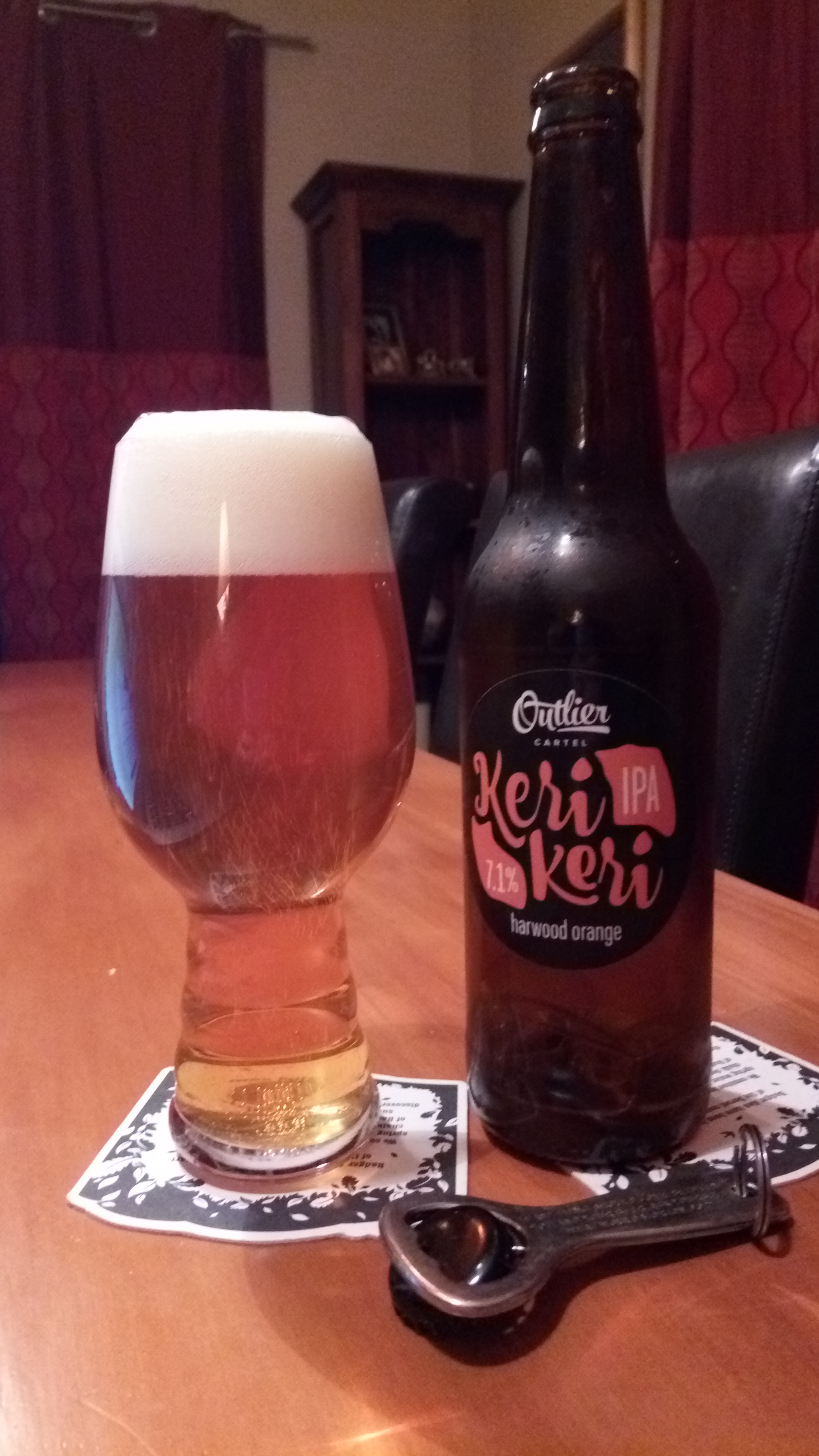 Beer club night, and exclusive in bottles for the club, but available in kegs elsewhere is the Outlier Cartel KeriKeri Harwood Orange edition. Membership etc etc