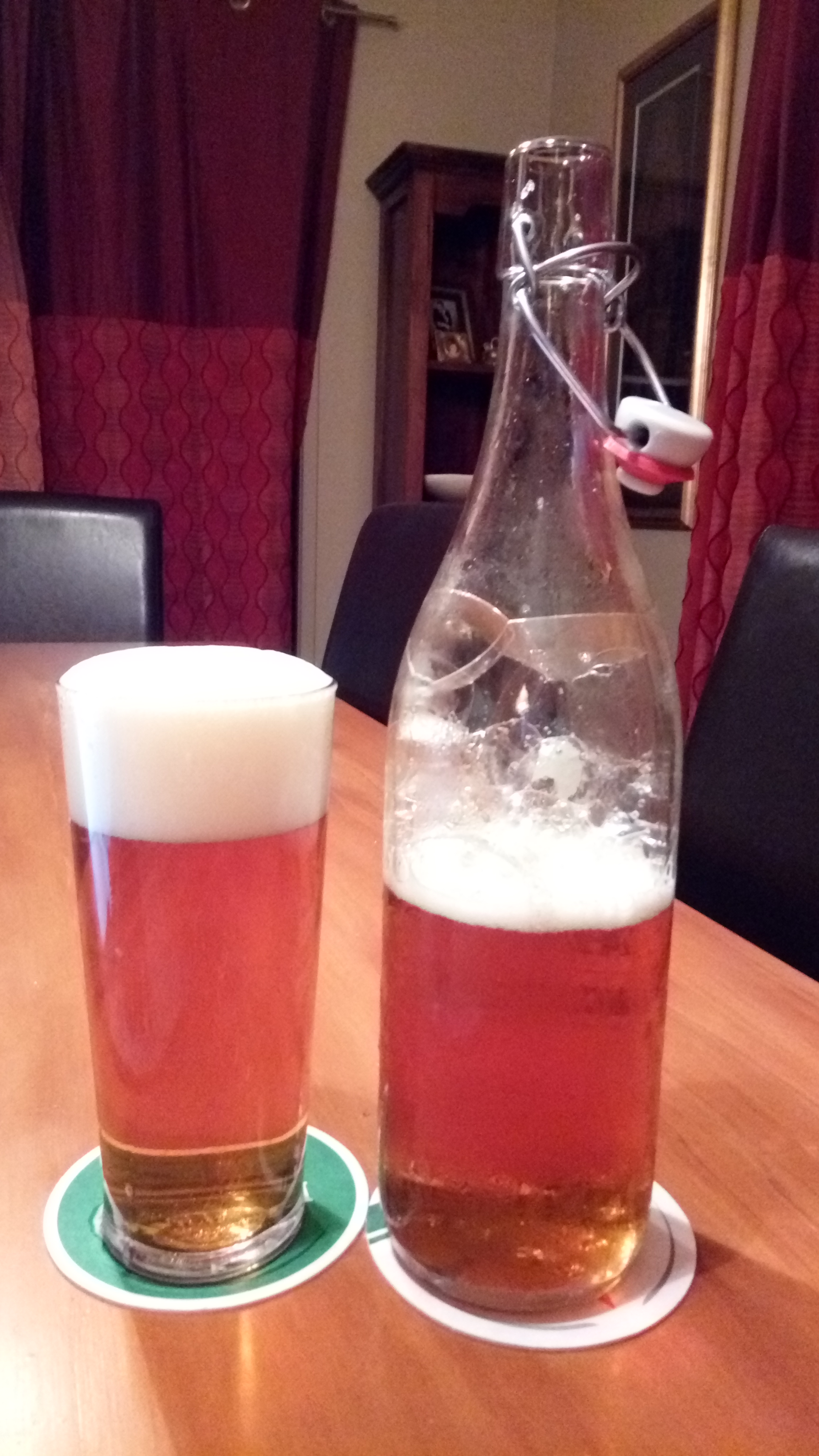 Syrupy rose like aroma on opening, a lively beer with a lot of carbonation this needs pouring quickly .