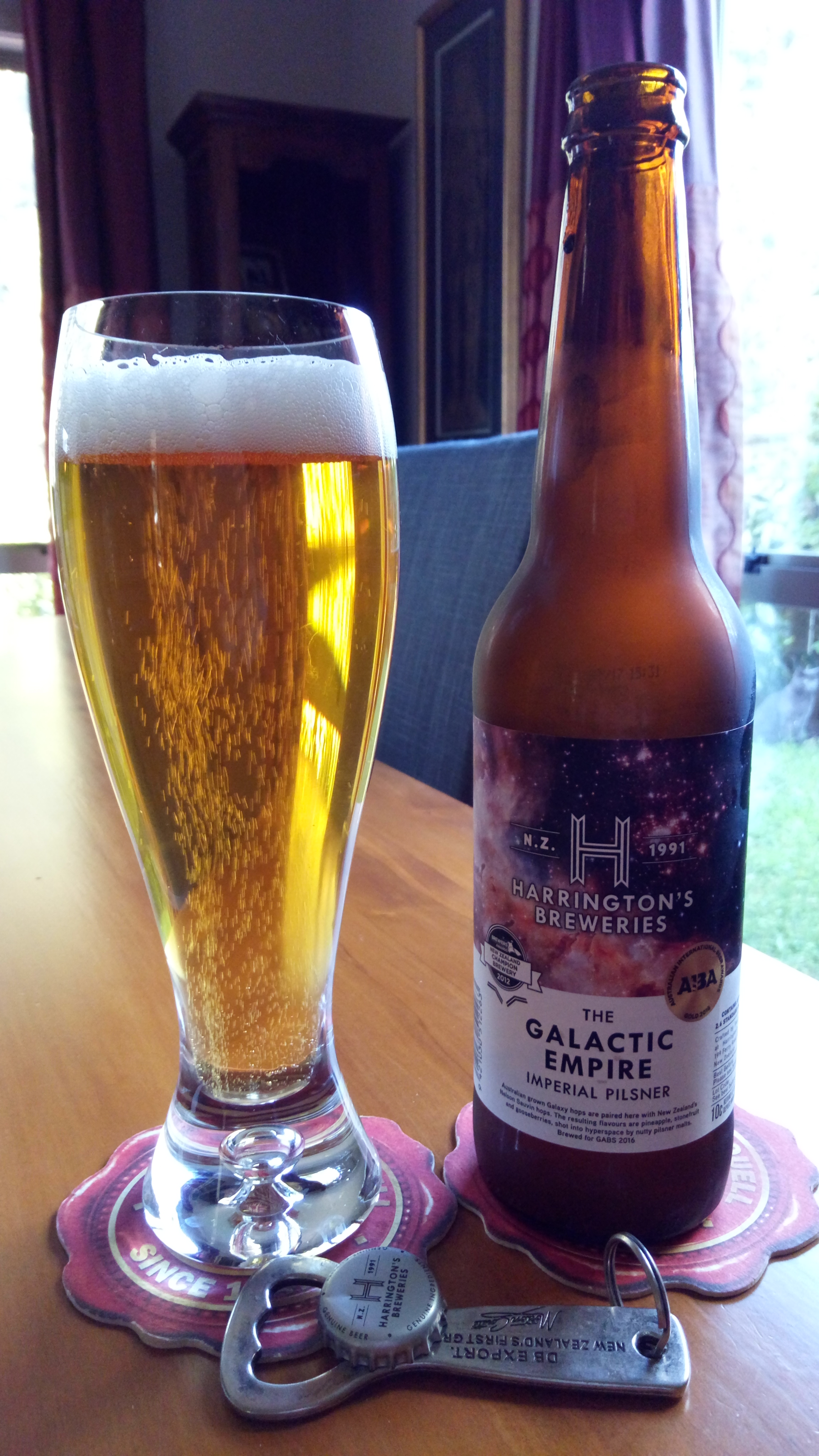 Brewed by Harringtons Breweries this on in the style that is of an Imperial Pils/Strong Pale Lager and they do that in Christchurch, New Zealand