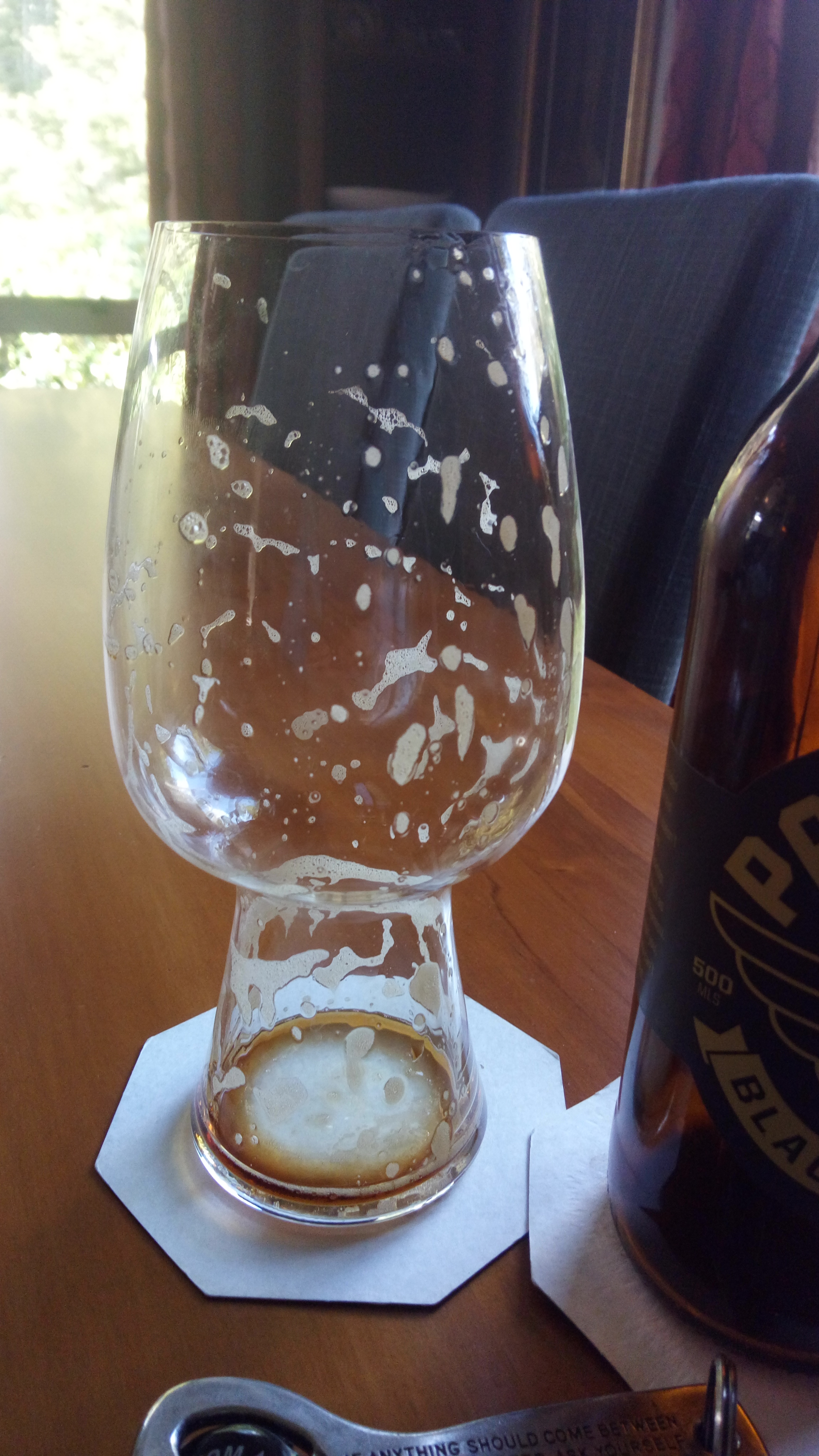 Alcohol oily and lacy in the glass, this also looks pretty awesome once you’re done with it, the only thing missing is the next one to pour into ino the glass
