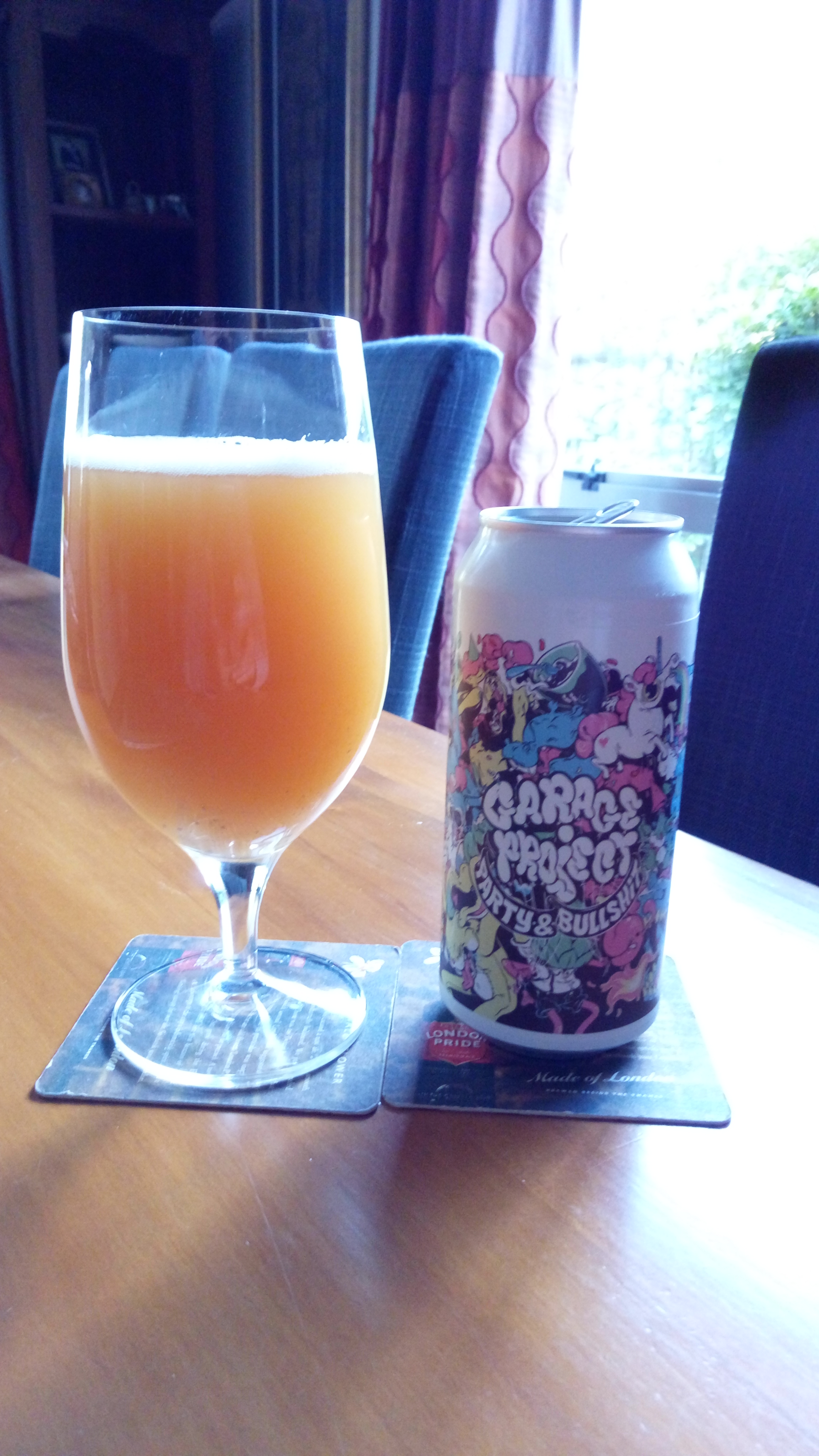Garage Project Party and Bullshit. Beer in a Can. Nice can art, for their 5th birthday according to the can notes. I wonder if it’s an either/or Party or BS.