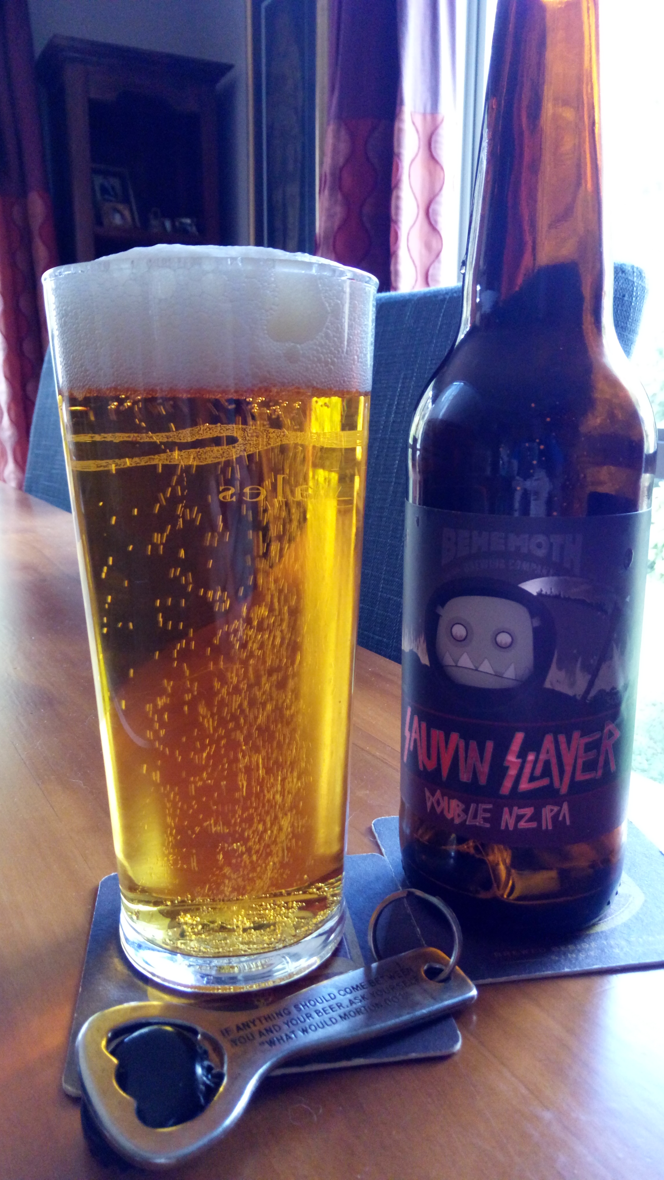 Behemoth Sauvin Slayer. I planned on having this on Friday Night, you know start the evening off with a bang and it goes well for me. Turns out that I didn’t actually buy this beer on Friday and so this is a day late and story later.