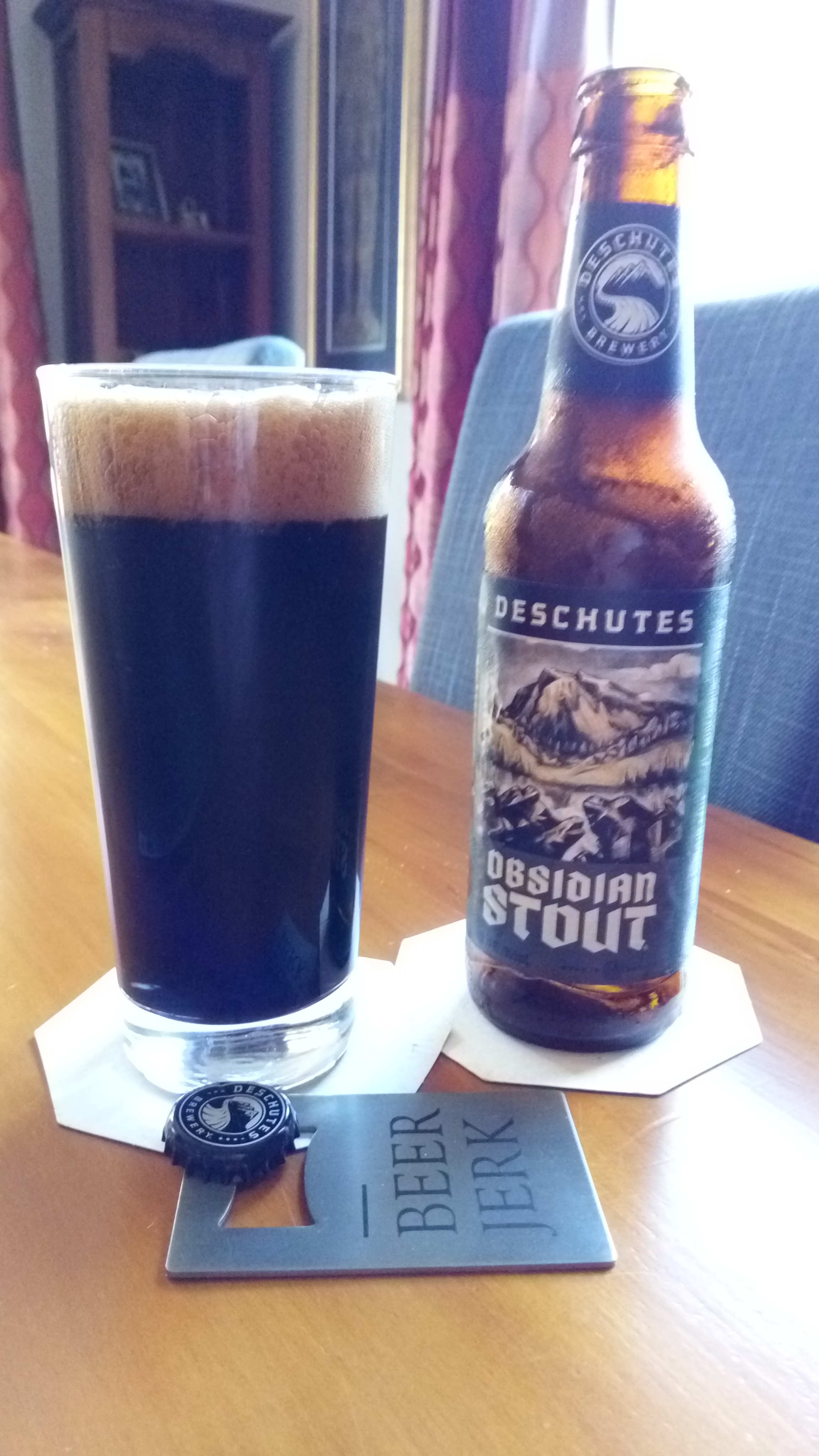 Deschutes Obsidian Stout, a beer for the BeerJerk club night. Summer has made another appearance, and it’s warm and sunny outside, and here I am inside but happy.