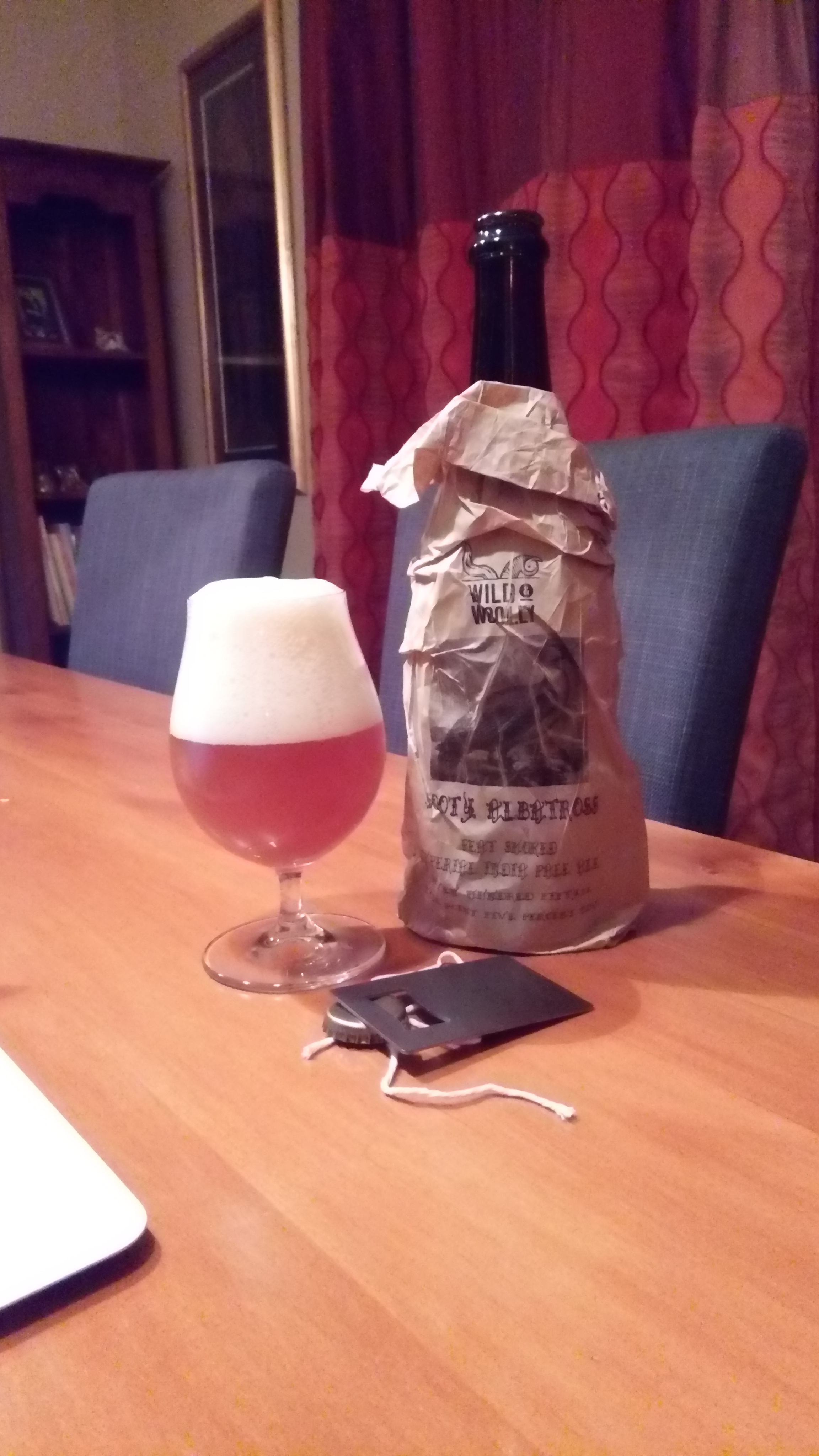 Wild & Woolly Sooty Albatross. A smoked IPA! Deliciously presented in a paper bag, because the beer is in a green champagne bottle, and they couldn’t figure out how to protect the beer from the sun, and it’s brilliant!