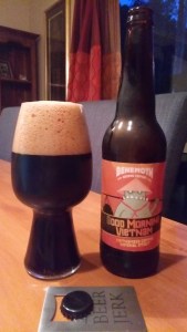 This is a really polished beer that delivers what it ways, It’s a full body imperial stout that looks great smells brilliant and then tastes like smooth as silk coffee over a mighty bitter stout beer with a lovely lingering taste and a meer hint of dryness.