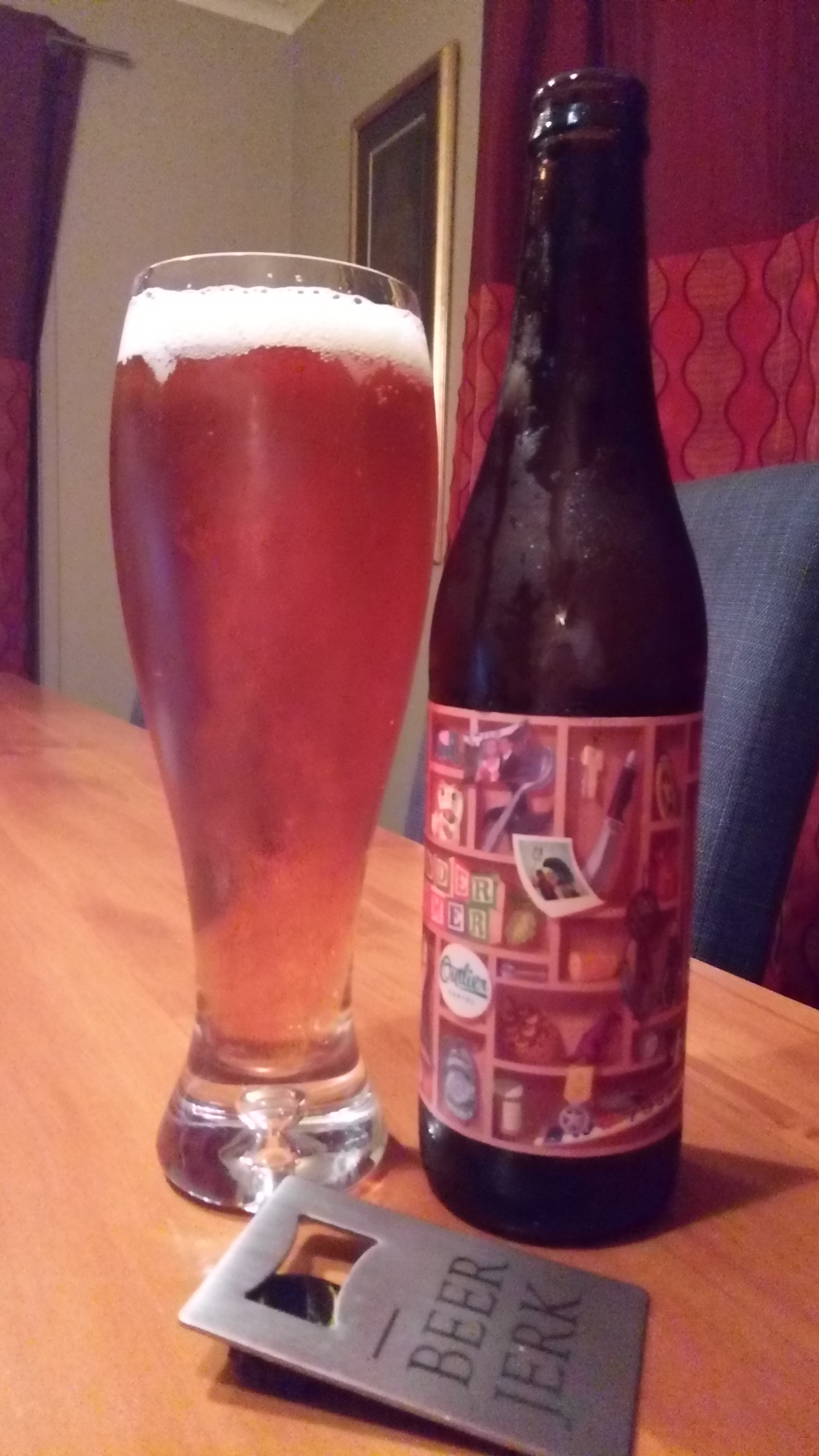 Wunderkammer: Outlier Cartel gathered friends and family to help make and inpire the beer. Think of Viennese vanilla and almond crescents, and Christmas in Austria. Brewed for GABS 2017. Pouring amber with golden highlights, the head is thin leaving a dense lacing on the glass. a touch of toasted almonds and vanilla upfront on biscuit and caramel, an almost croissant-like base from the malts used. a thick and creamy mouthfeel, with slight bubbles underneath. a ’master of disguise’, not showing the fact that this is more like a spiced english barleywine clocking in at 9% ABV. drink now or cellar for a decade, this will improve for years to come