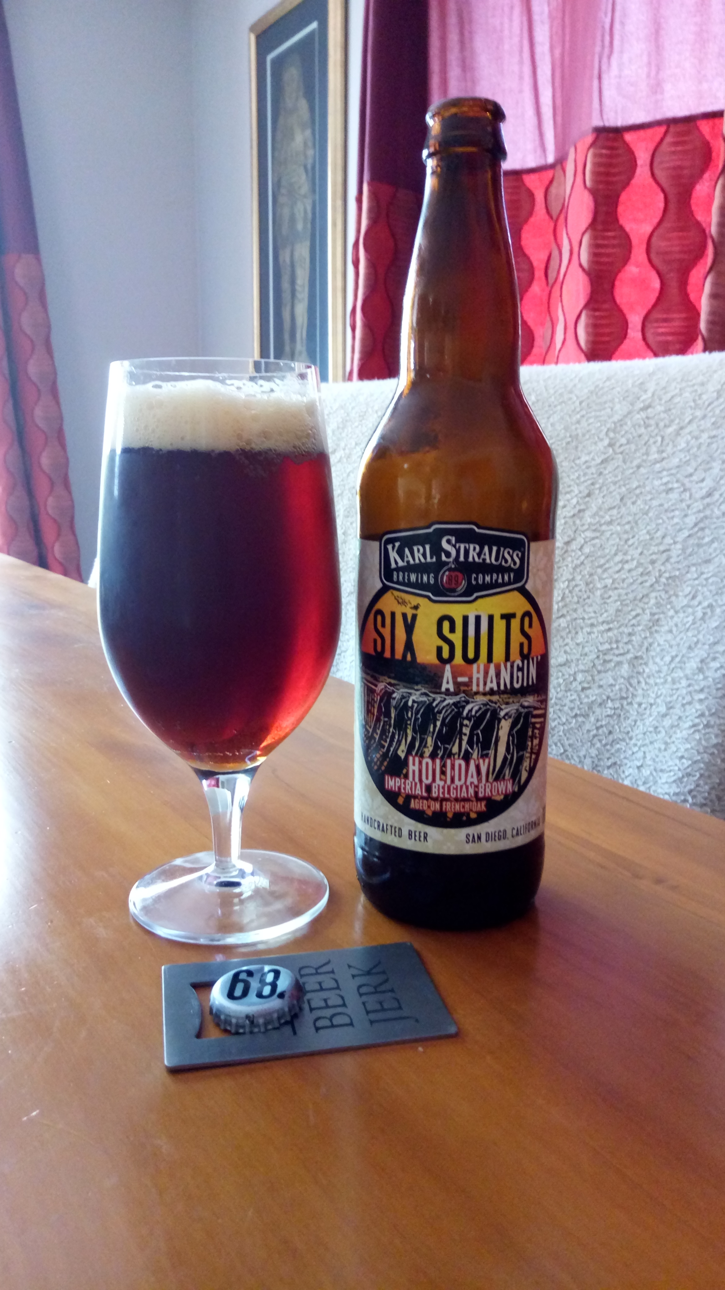 Karl Strauss Six Suits A-Hangin’ Holiday Imperial Belgian Brown. Which is a terrible lyric in a song, if you were to include it. But I find myself looking now for the different and unusual beers to get to the 4 digit number that I’ve been avoiding. If only I could find a beer called ‘prevaricate’ Man in the shop tells me that it’s getting harder to sell the big American beers, mostly on price, I’d have though that we bat our weight on styles too, not quantity but quality.