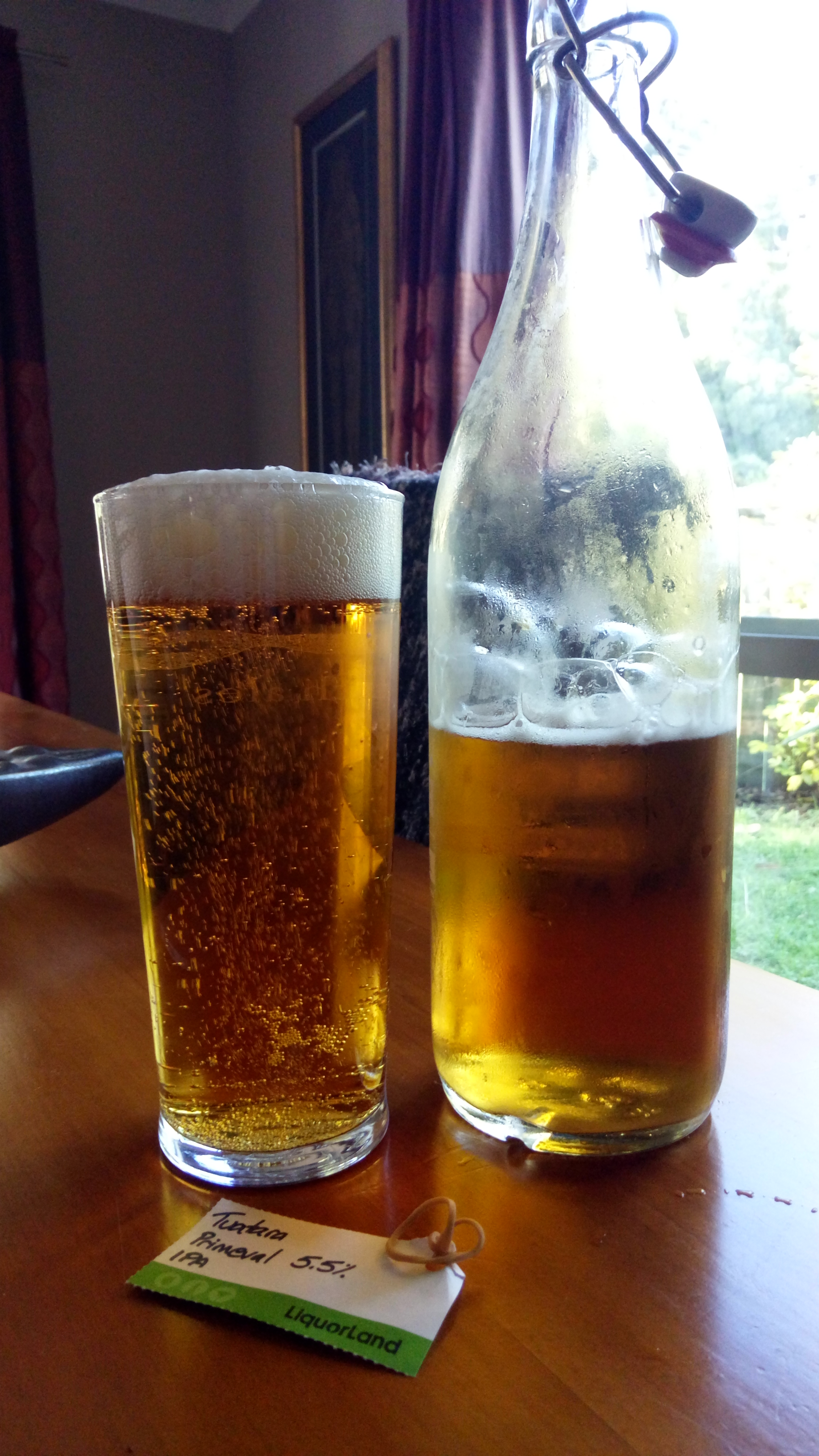 It’s without any irony based on the age of the music I’m listening to that I’m drinking a Tuatara – Primeval Old World IPA from the Fill station at the Local Liquorland .