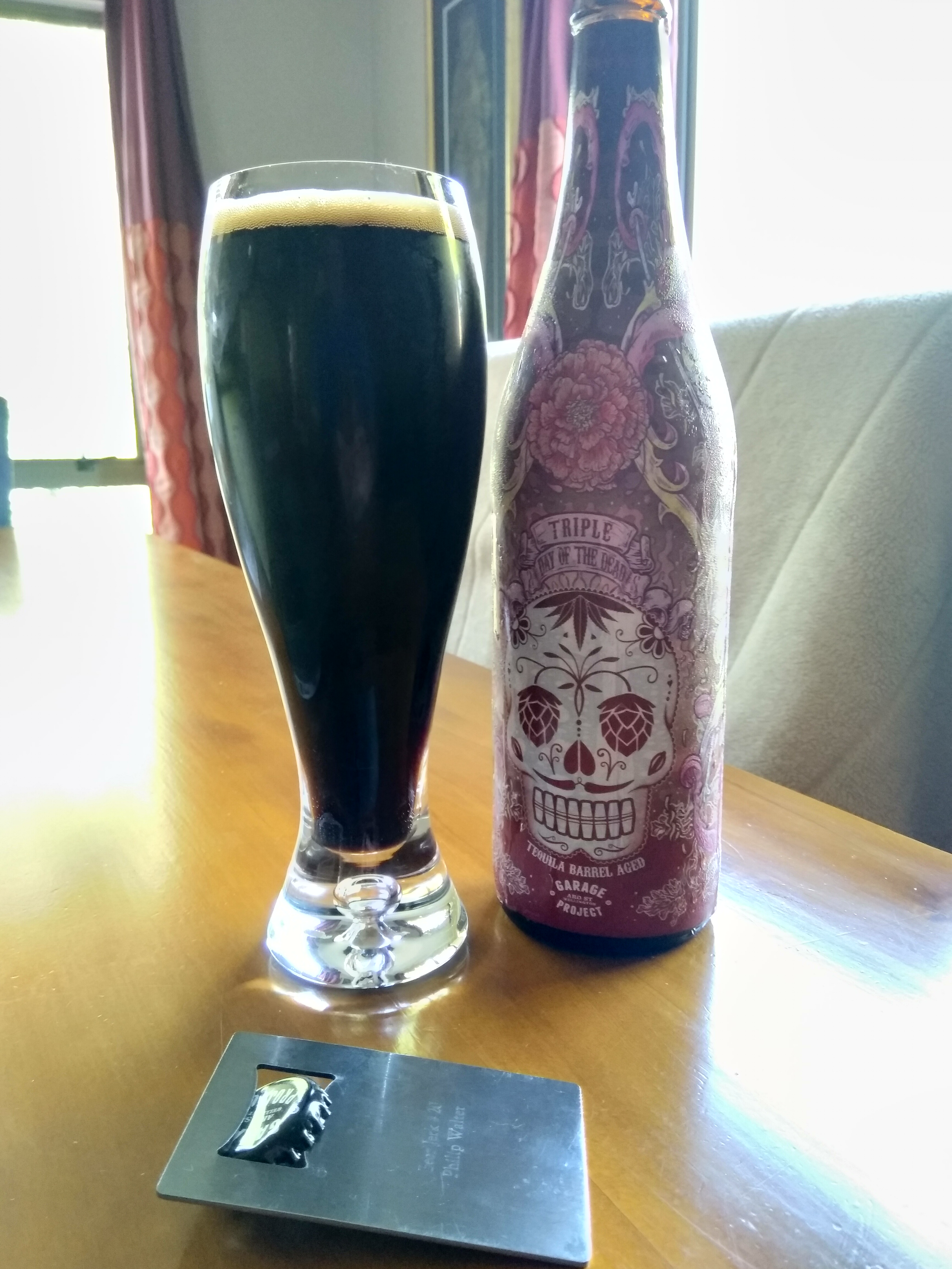 Garage Project – Triple Day of the Dead 2017. Not even the 2018 version, I don’t think this has been in my fridge that long, perhaps I imagined drinking this before. An occasional beer, sporadic even, but one that should be had to go past if you saw it, and of course this year the hand was faster than the eye in putting this in the stash carrier, where clearly the eye overlooked it for a while since then. However like other things this is not a treasure and needs to be enjoyed.