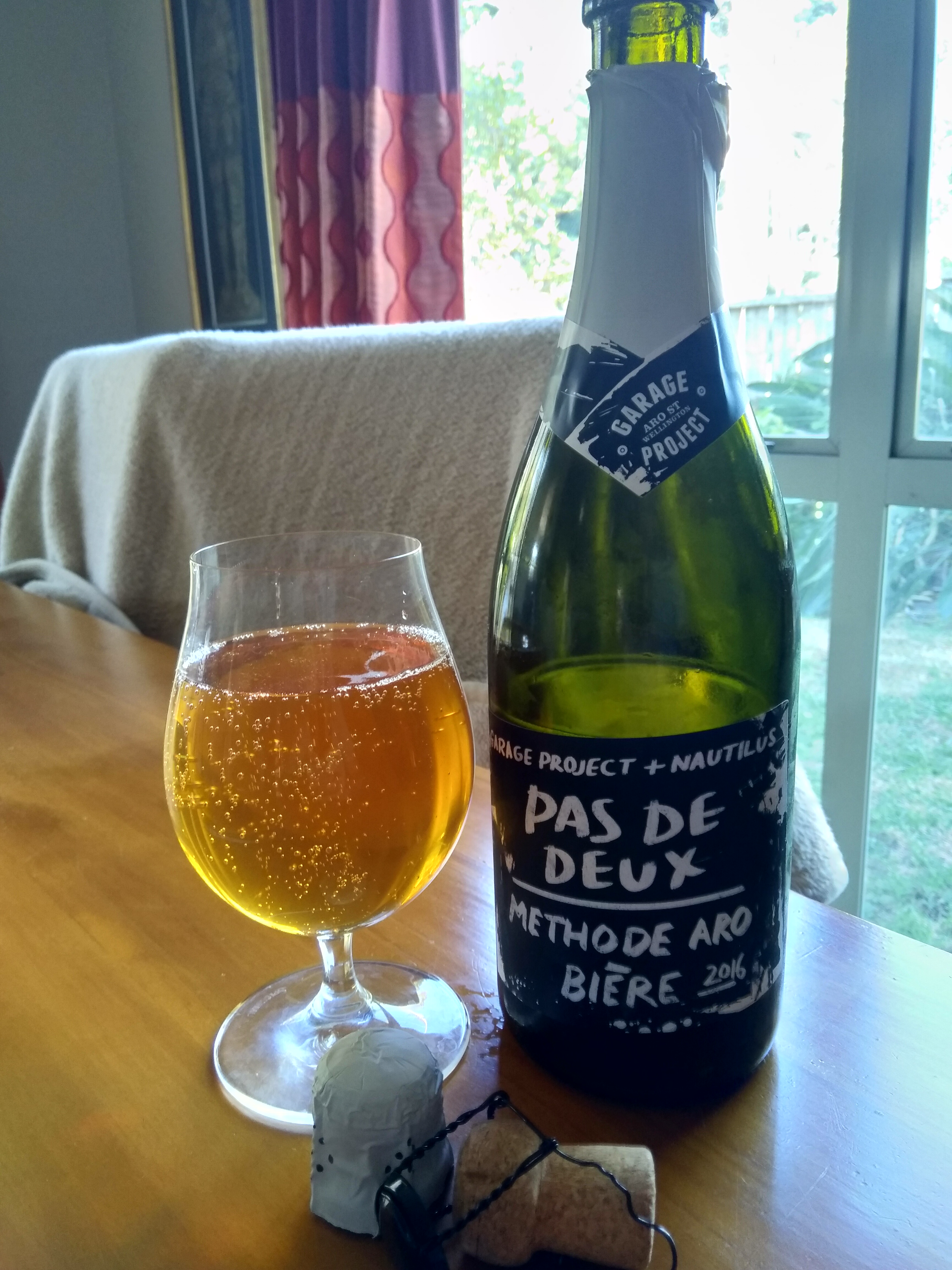 Garage Project Pas De Deux. 2016. A beer I looked past the first time I saw it. GP have made some noises around wines and I’m not sure that it’s a good thing, they don’t appear to be big movers. However I saw a couple of reviews on this, a beer, and that made it more important that I find out for myself.