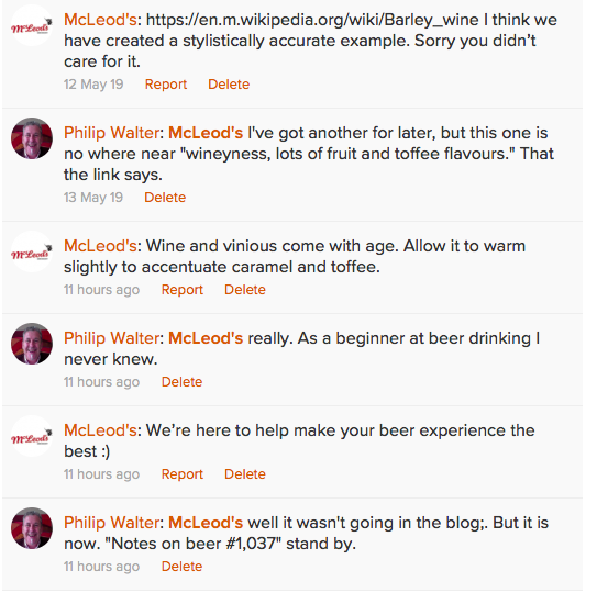 I enjoy the McLeods beers, and have had, up to now a great experience on the Social Media platforms. I’m not going to shy away from saying a beer isn’t good, and I’m likewise not going to be shy when it comes to saying beer is great. So when I recon that their Triple is “As good as anything I’ve had, possibly the best NZ Tripel.” there’s no interaction, and so I’m not expecting such a defensive and aggressive interaction when for me a beer falls short.