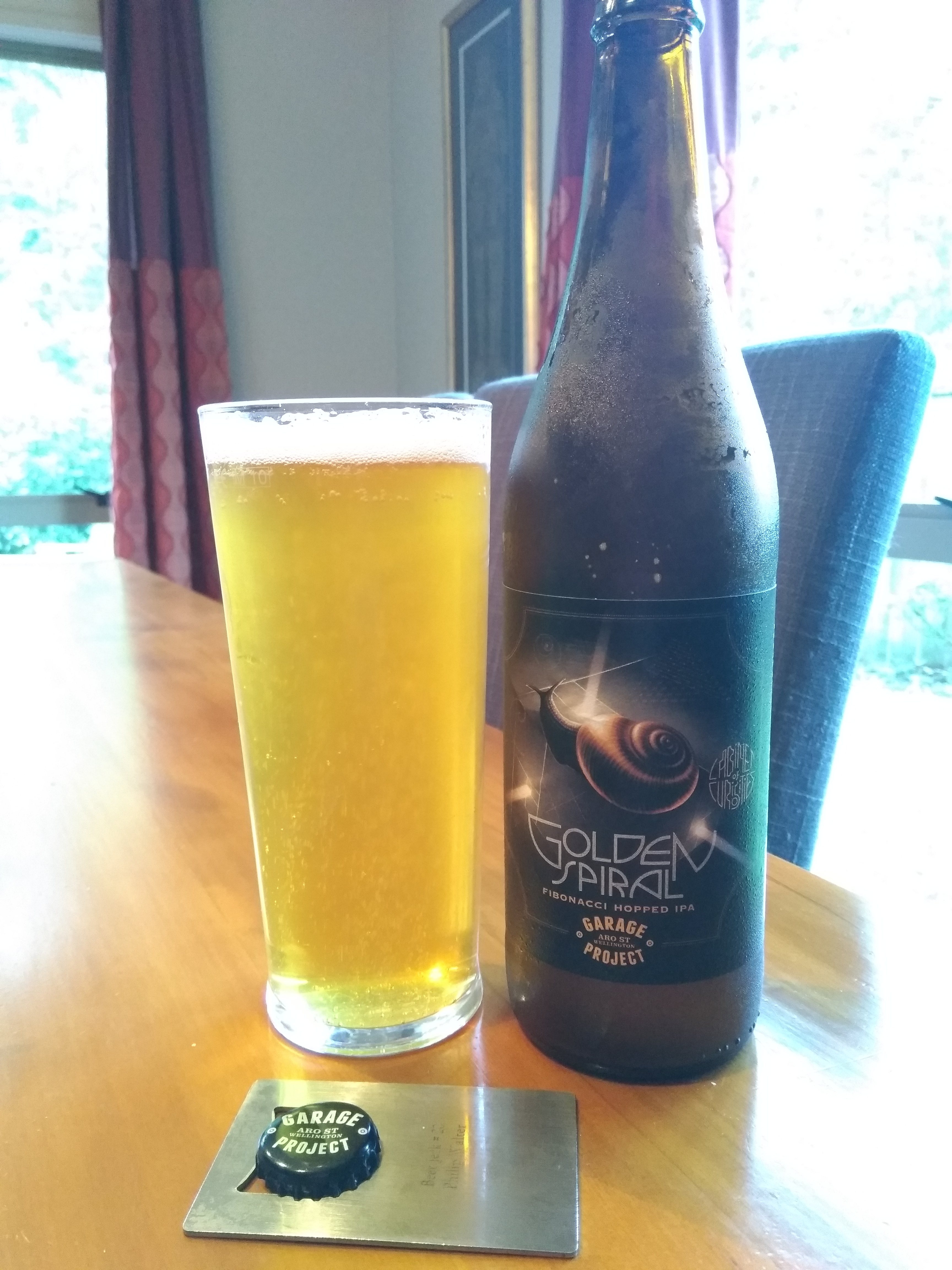 Garage Project Golden Spiral. An Imperial IPA from the Cabinet of Curiosities: An ale hopped with fibonacci numbers.
