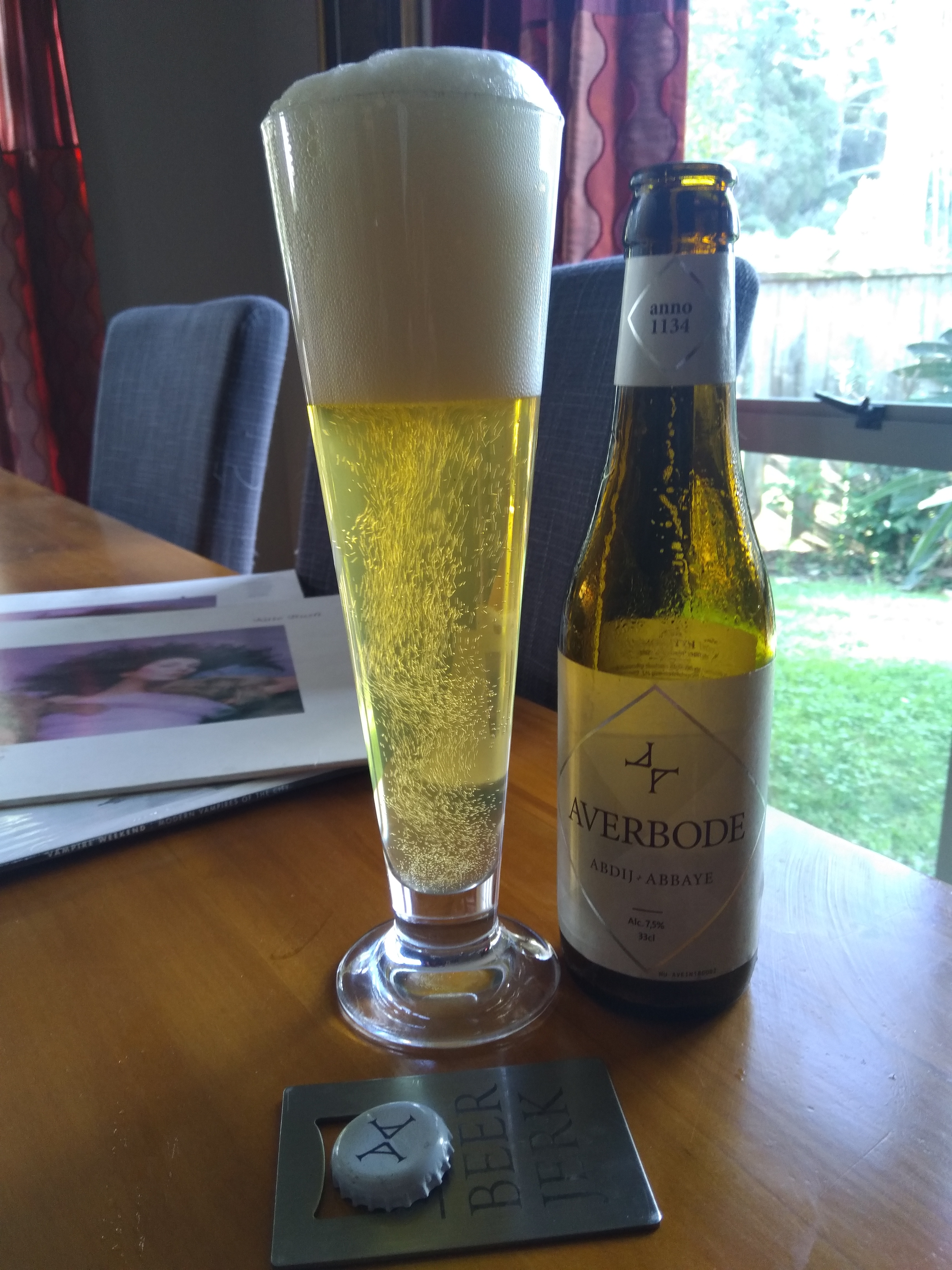 Abdij Averbode. It’s all a bout the new beers, and this one looked too good to go past, the label is really clean and I thought rather appealing. Also Belgian beer. Can’t go past that.