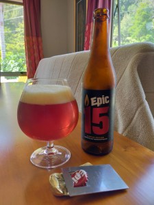 Epic 15 îs a celebration beer, “This year is Epic’s 15th anniversary and we are also commemorating the 2000th brew at Steam Brewing Company” with an American style Barleywine. It is a beer that can be cellared, or it can be enjoyed now, as I am.