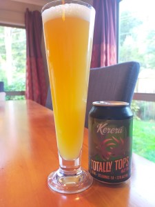 Kereru Totally Tops is the latest in the monthly beers from Kereru. I always look forward to these beers, because they’re fresh, and because they come with lovely art on the can, and because they’re nice people.