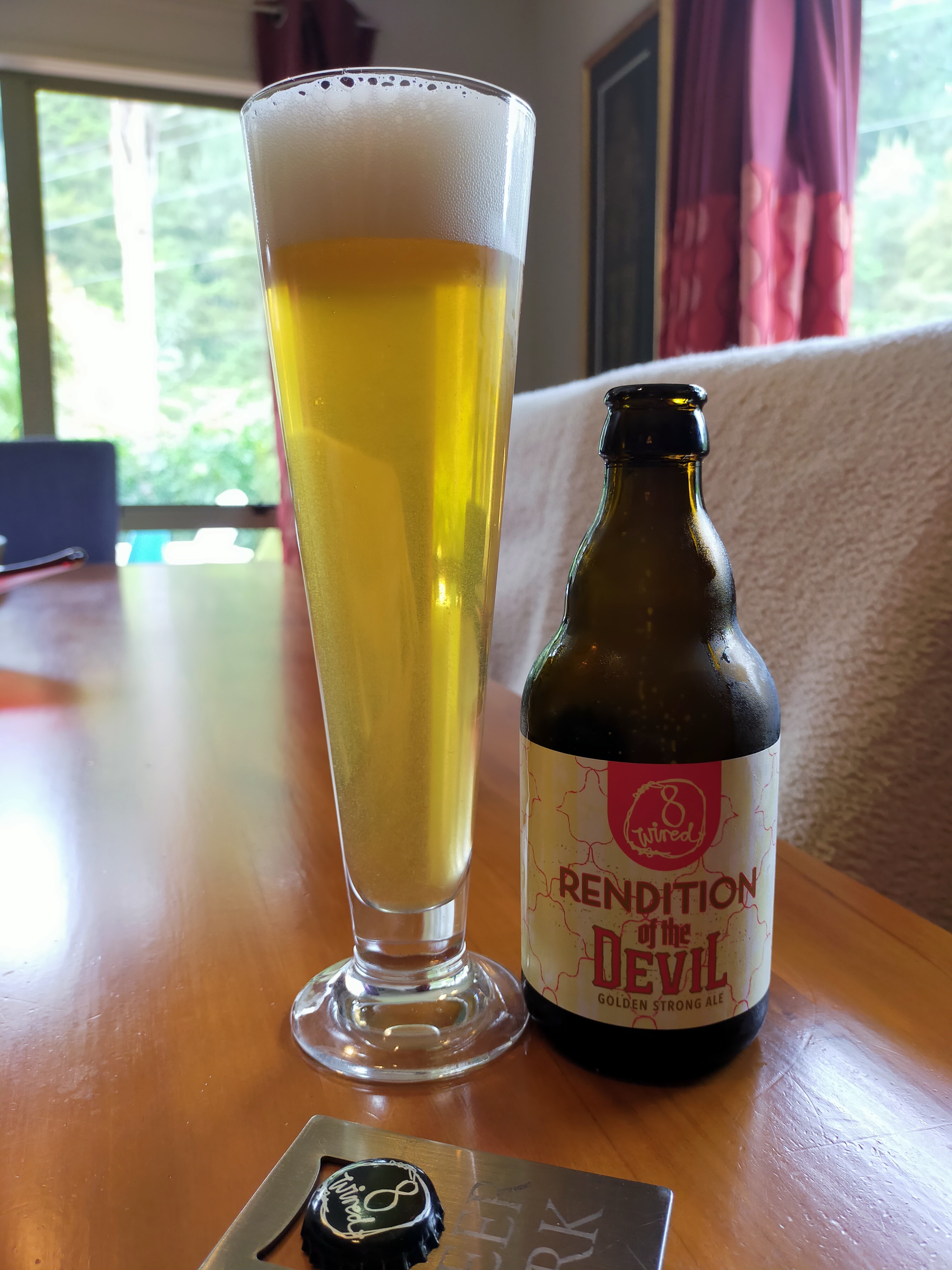 8 Wired Brewing make the 8 Wired Rendition of the Devil in Warkworth, Auckland, 🇳🇿 New Zealand, and it is a Belgian Ale – Strong Pale style beer of 8.5% – the 330ml bottle is 2.2 standard drinks in NZ