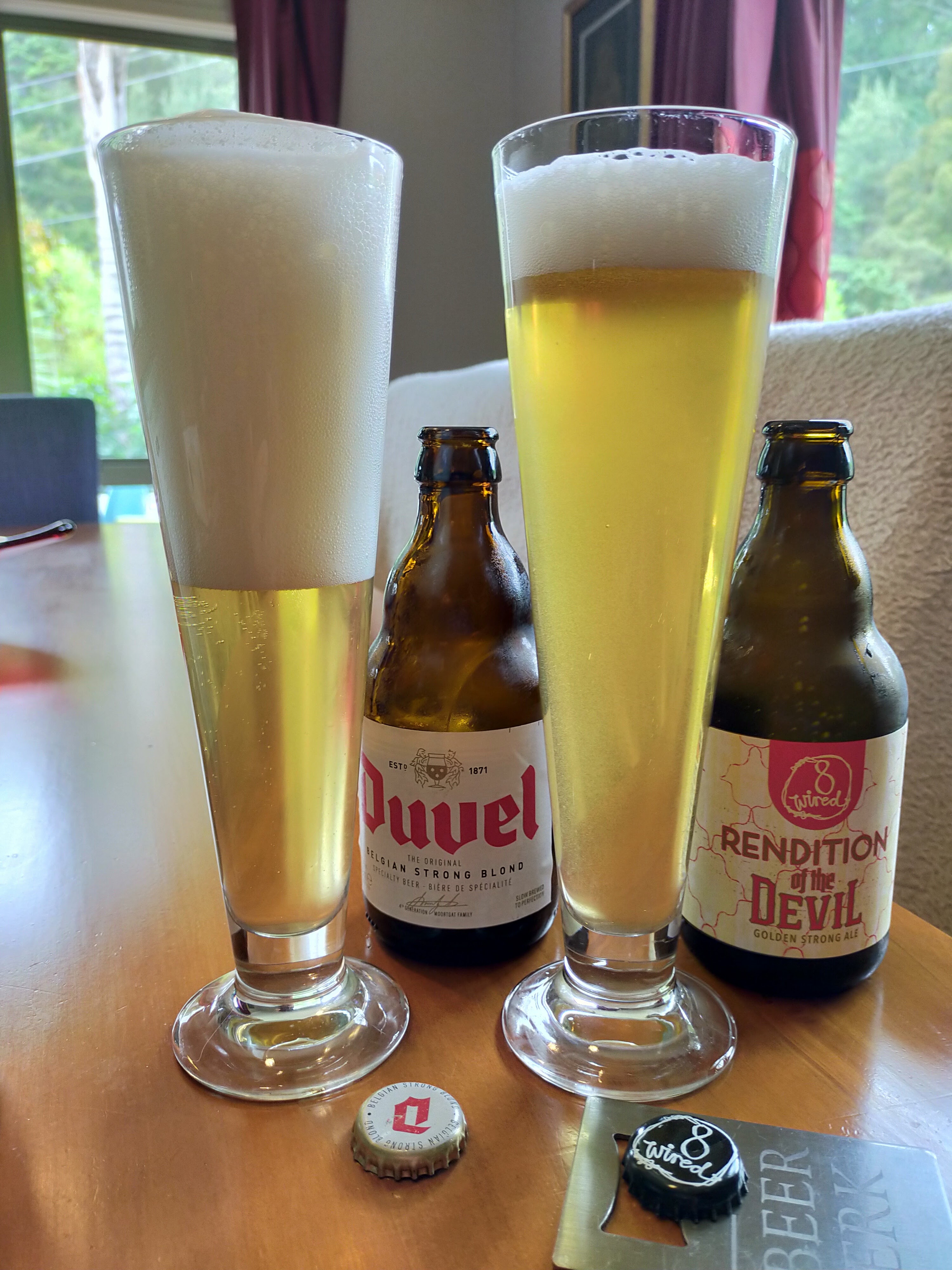 It’s the Beer of the week with the @BeerJerkNZ BeerJerk – just like a book club but with beers people – tonight it is the 8 Wired Rendition of the Devil. But in a twist I’m have a side by side with a well known beer, Duvel. This could be an eyeopener