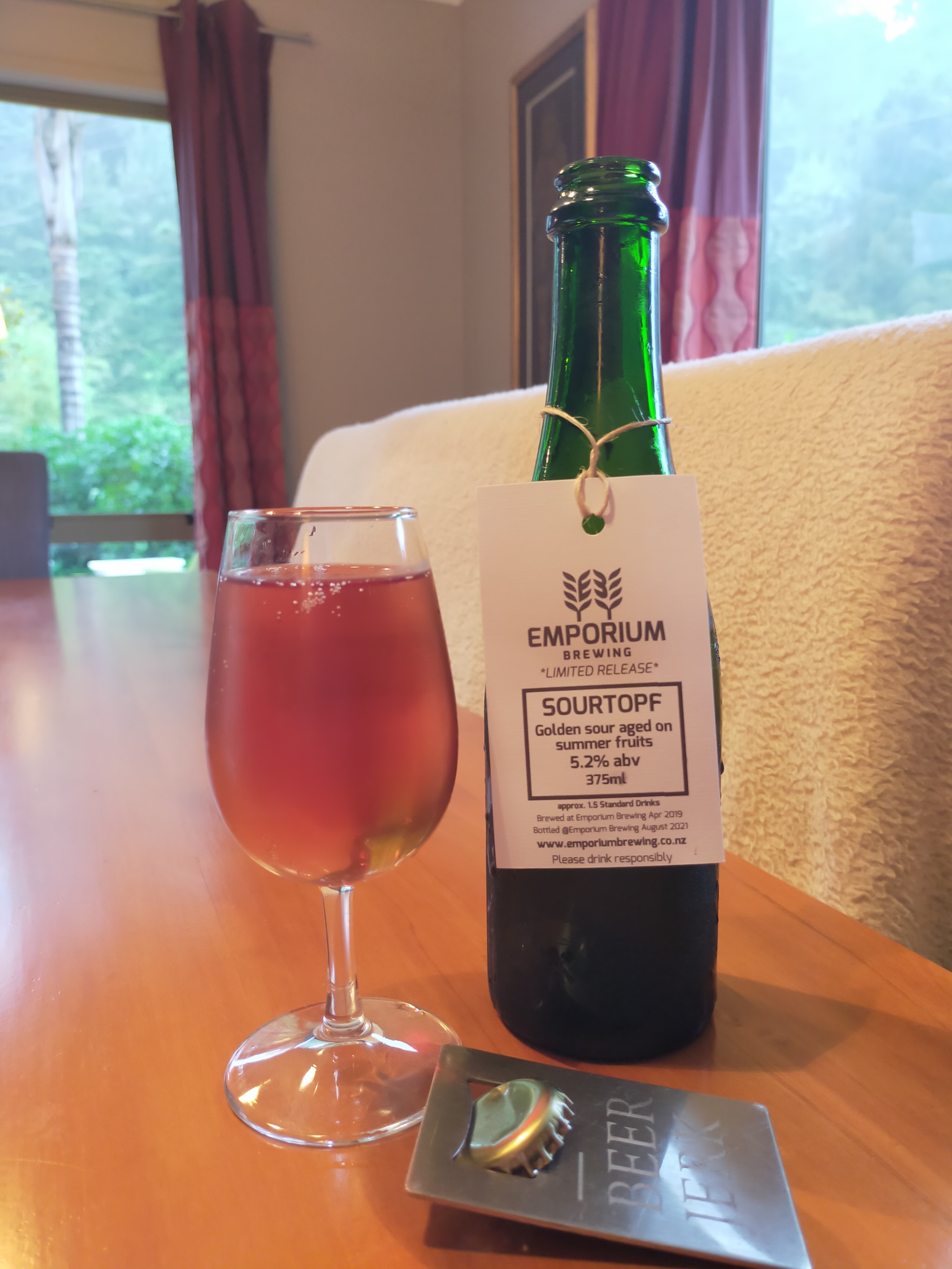 Emporium Brewing are based in Kaikoura, Canterbury, 🇳🇿 they make the Sourtopf which has an ABV of 5.2% and it is a Fruited Golden Sour beer in a 375ml Bottle that in turn has 1.5 standard drinks.