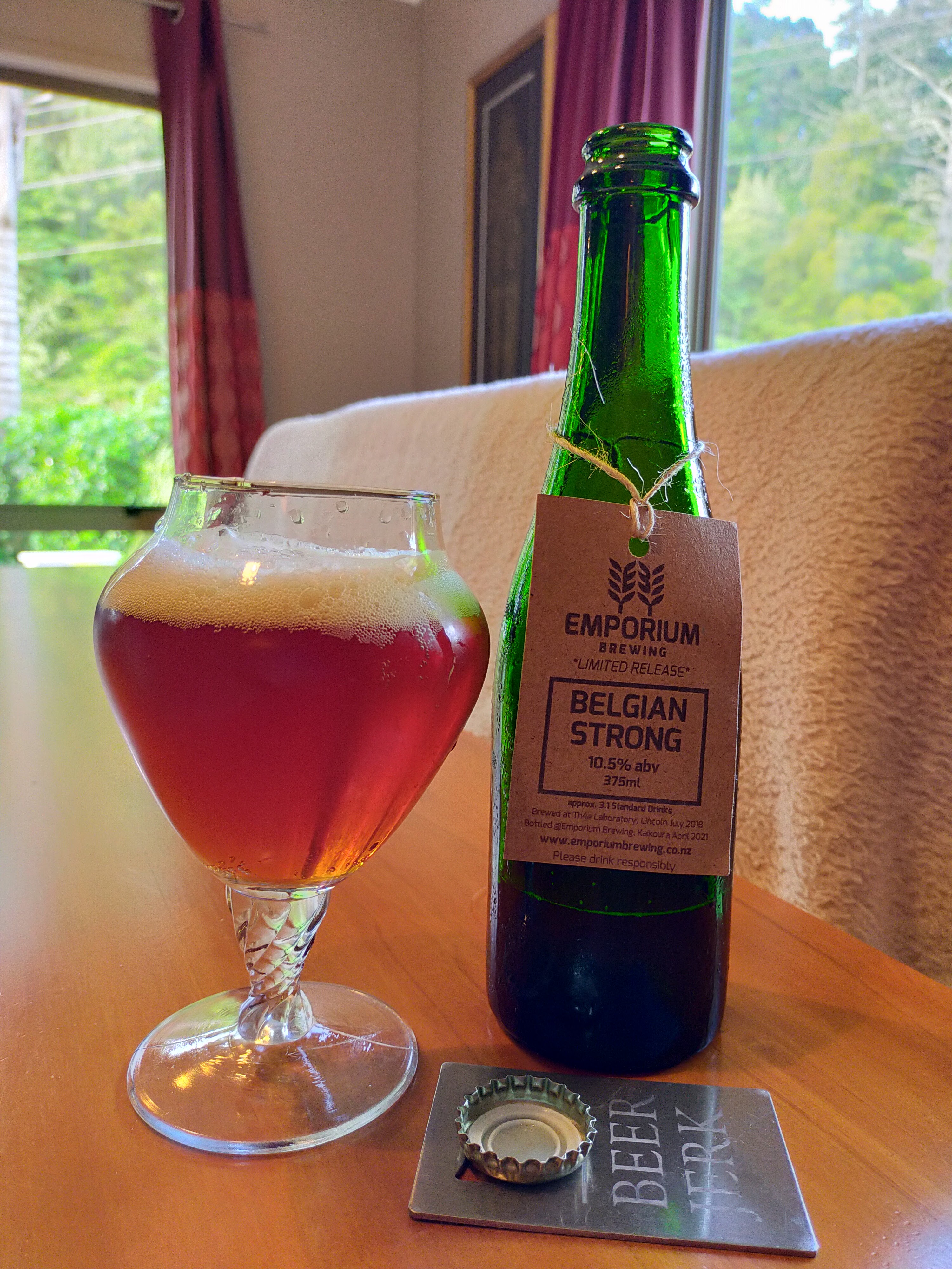 Emporium Brewing are based in Kaikoura, Canterbury, 🇳🇿 and they make the Belgian Strong in the style that is of course Belgian Strong ale – and this is 10.5% ABV. The 375ml Bottle is 3.15 standard drinks in NZ
