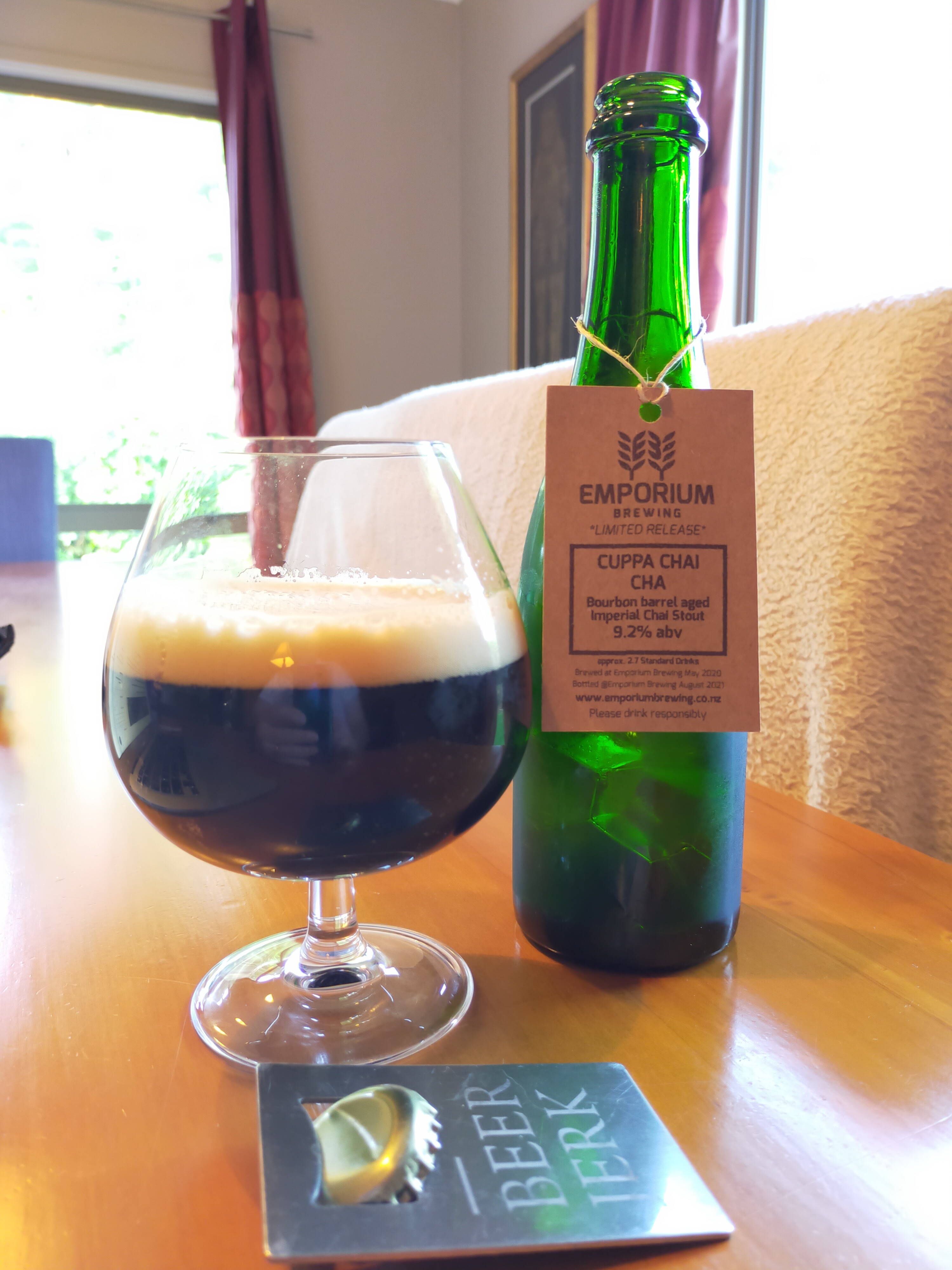 Emporium Brewing are based in Kaikoura, Canterbury, 🇳🇿 where they brew the Cuppa Chai Cha with an ABV of 9.2% and 50IBU in the style that is Imperial Stout. the 375ml bottle is 2.7 standard drinks in NZ.