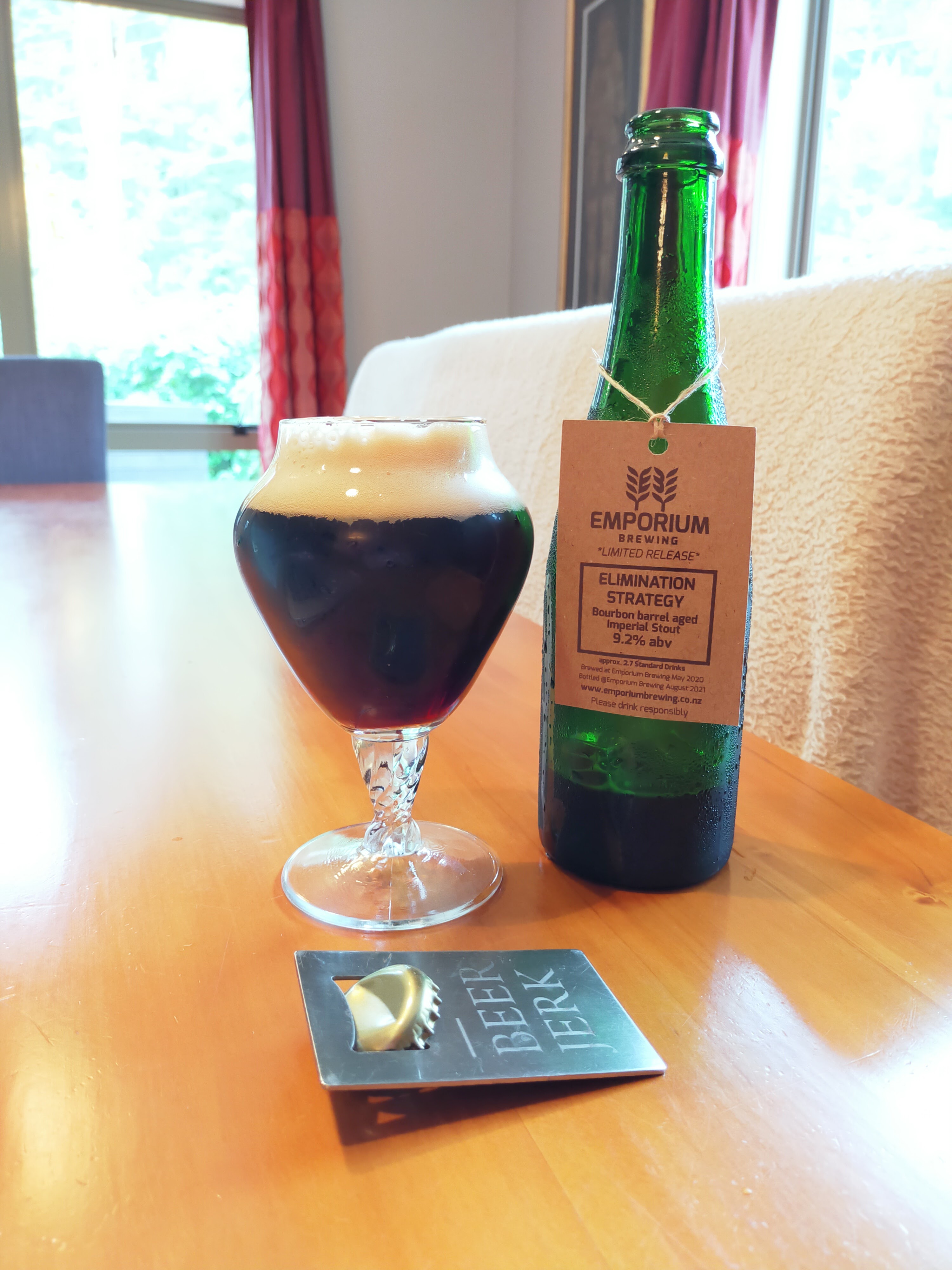 Emporium Brewing are based in Kaikoura, Canterbury, 🇳🇿 Elimination Strategy is a 9.2% – Imperial Stout in a 375ml Bottle which is 2.72 standard drinks in NZ it is of course a Stout – Imperial