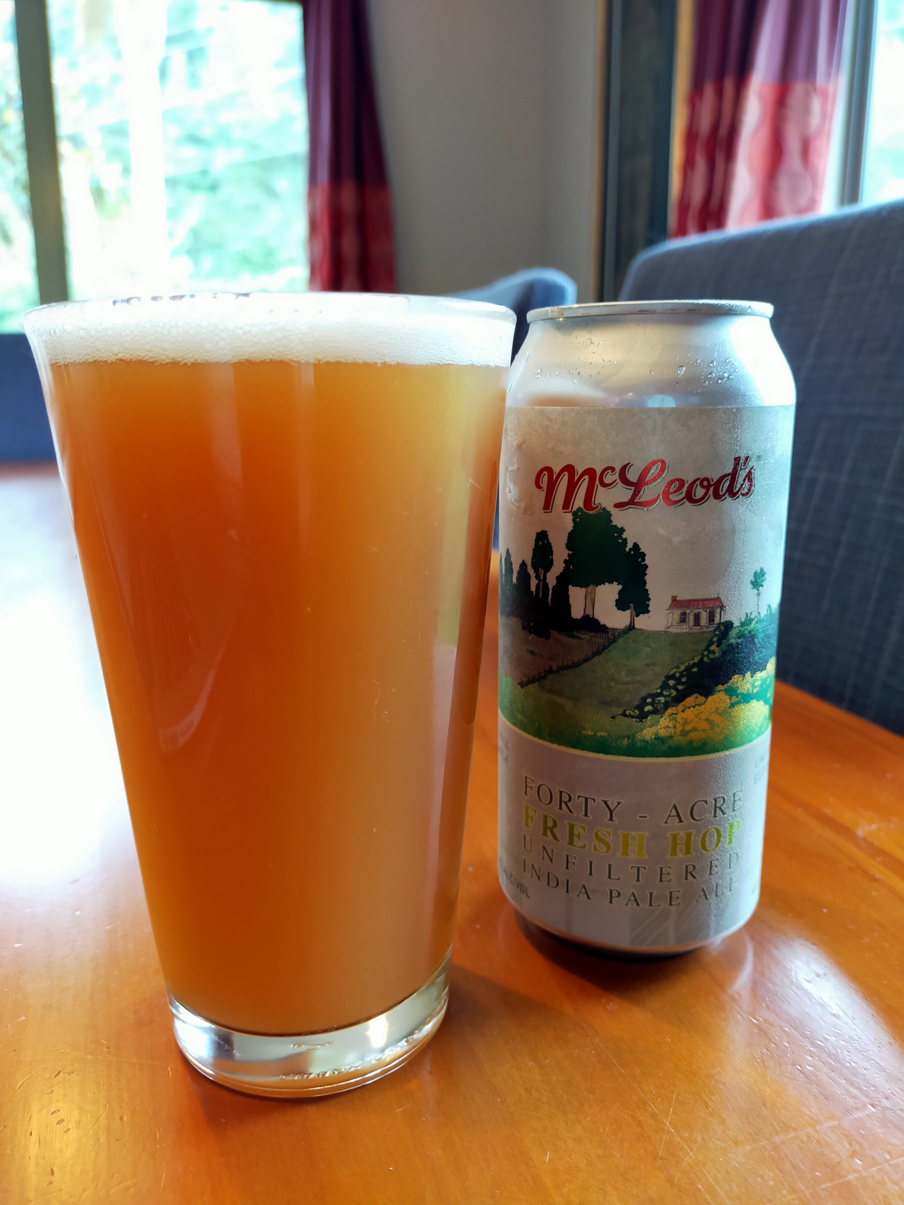 Here we have a Fresh Hop beer that comes highly recommended, and for many the pick of the fresh hop beers this year McLeod’s Forty Acre Fresh Hop Unfiltered IPA. A season, it seems, to have gathered many unfavourable or disappointing reviews across mostly all the beers (that I’ve noticed). There are exceptions and the range of opinions is as always a mixed bag. I can only talk personally that I’ve been underwhelmed with most of the beers I have, with a couple of exceptions.