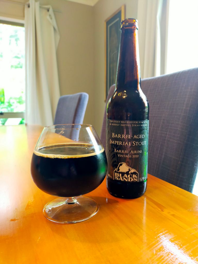 Black Sands Brewing Company of course make the Black Sands Barrel-Aged Imperial Stout, and it’s a local to me beer brewed in Auckland, 🇳🇿 New Zealand. Surprisingly in the the style the is of Stout – Imperial which has an 11.5% ABV. Splendid. This is 4.5 standard drinks in NZ.